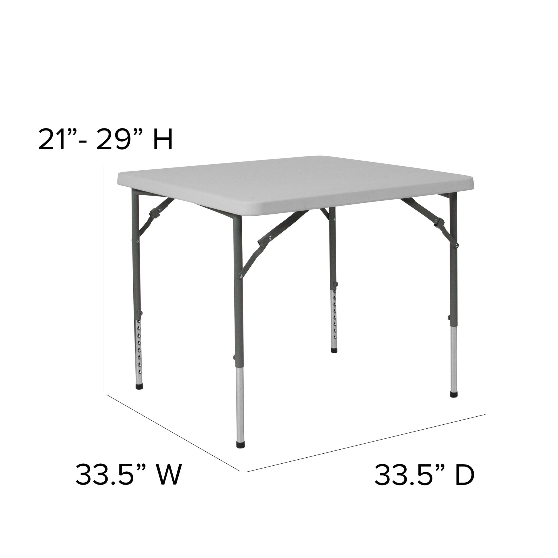 Kathryn 2.79-Foot Square Height Adjustable Granite White Plastic Folding Table Dimensions: 33.5"W x 33.5"D x 21" - 29"H