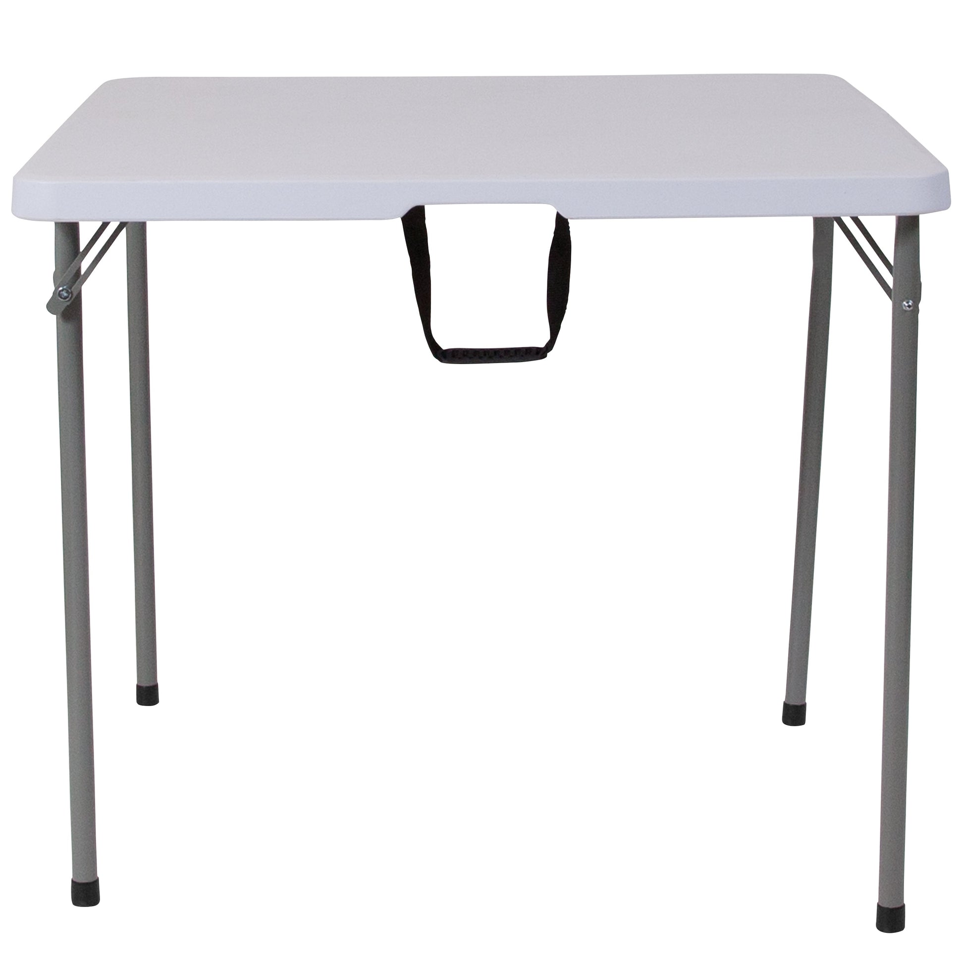 Kathryn 2.79-Foot Square Bi-Fold Granite White Plastic Folding Table with Carrying Handle Dimensions: 33.5"W x 33.5"D x 29"H