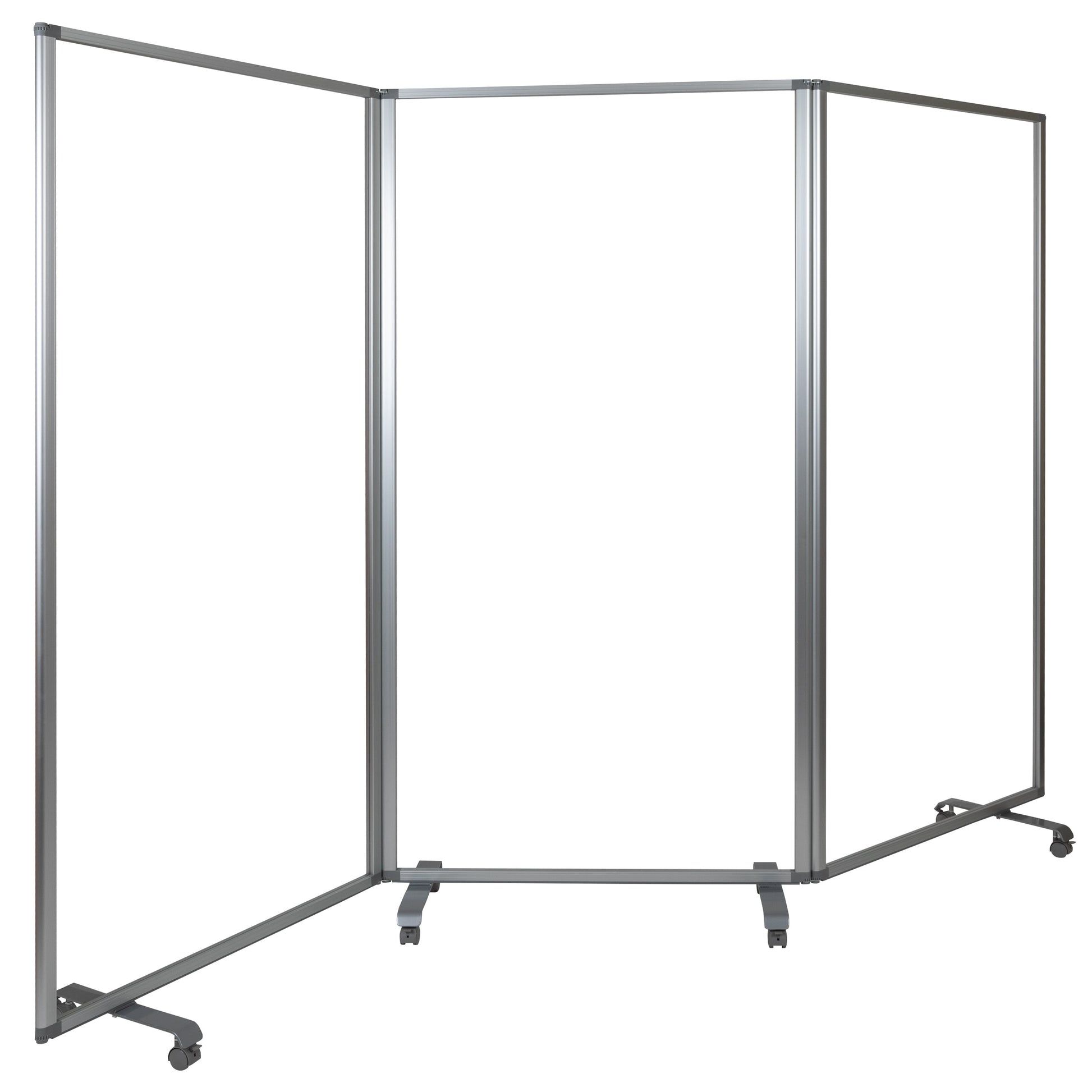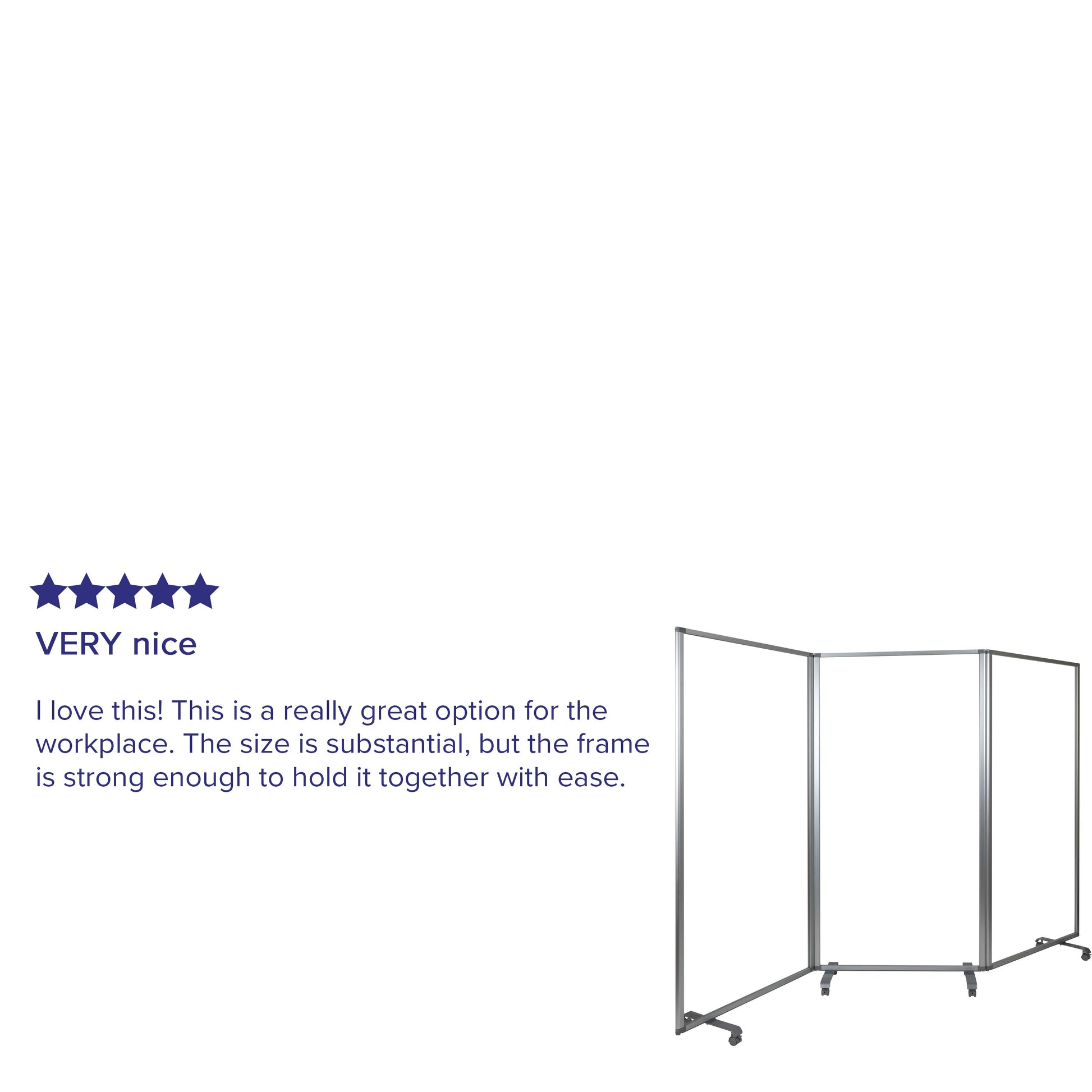Raisley Transparent Acrylic Mobile Partition with Lockable Casters, 72"H x 36"L (3 Sections Included) Dimensions: 35.375" - 106.5"W x 0.875" - 25.375"D x 72.125"H