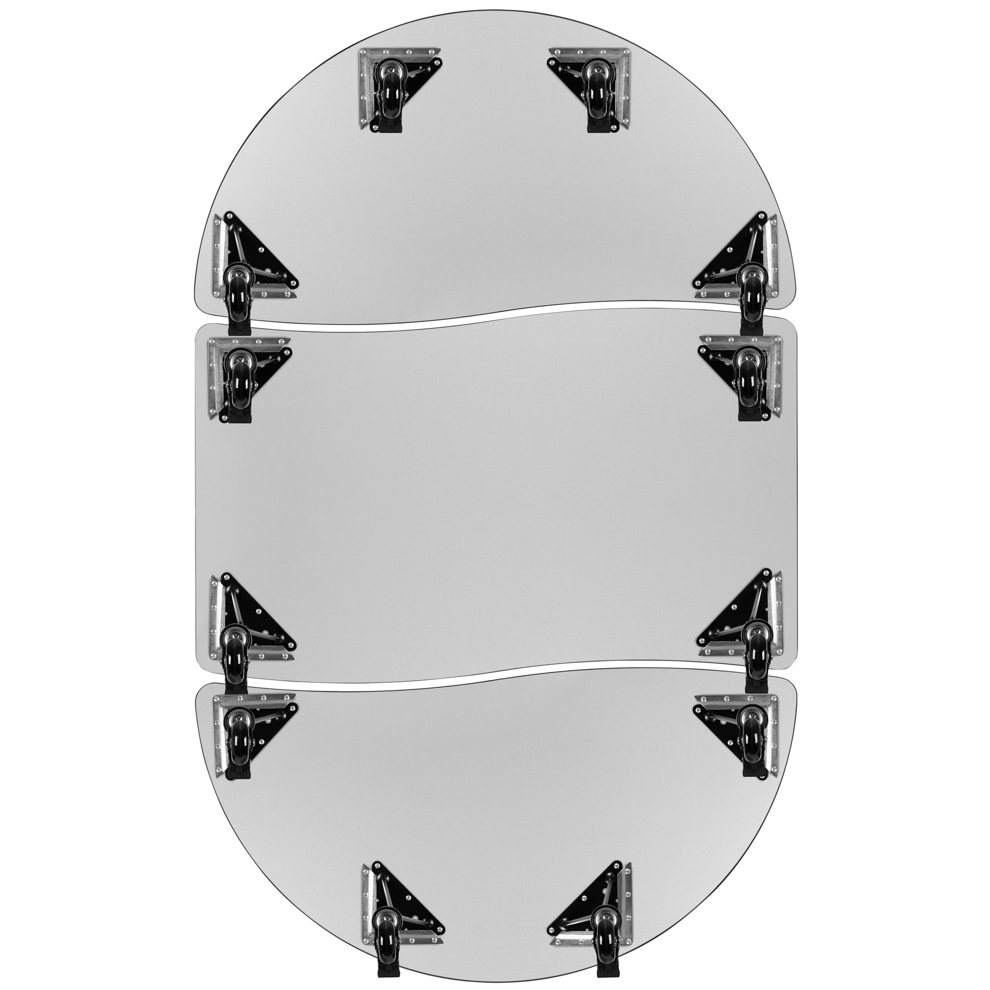Emmy 3 Piece Mobile 76" Oval Wave Flexible Oak Thermal Laminate Activity Table Set-Standard Height Adjustable Legs Dimensions: 47.5"W x 76"D x 22" - 30"H