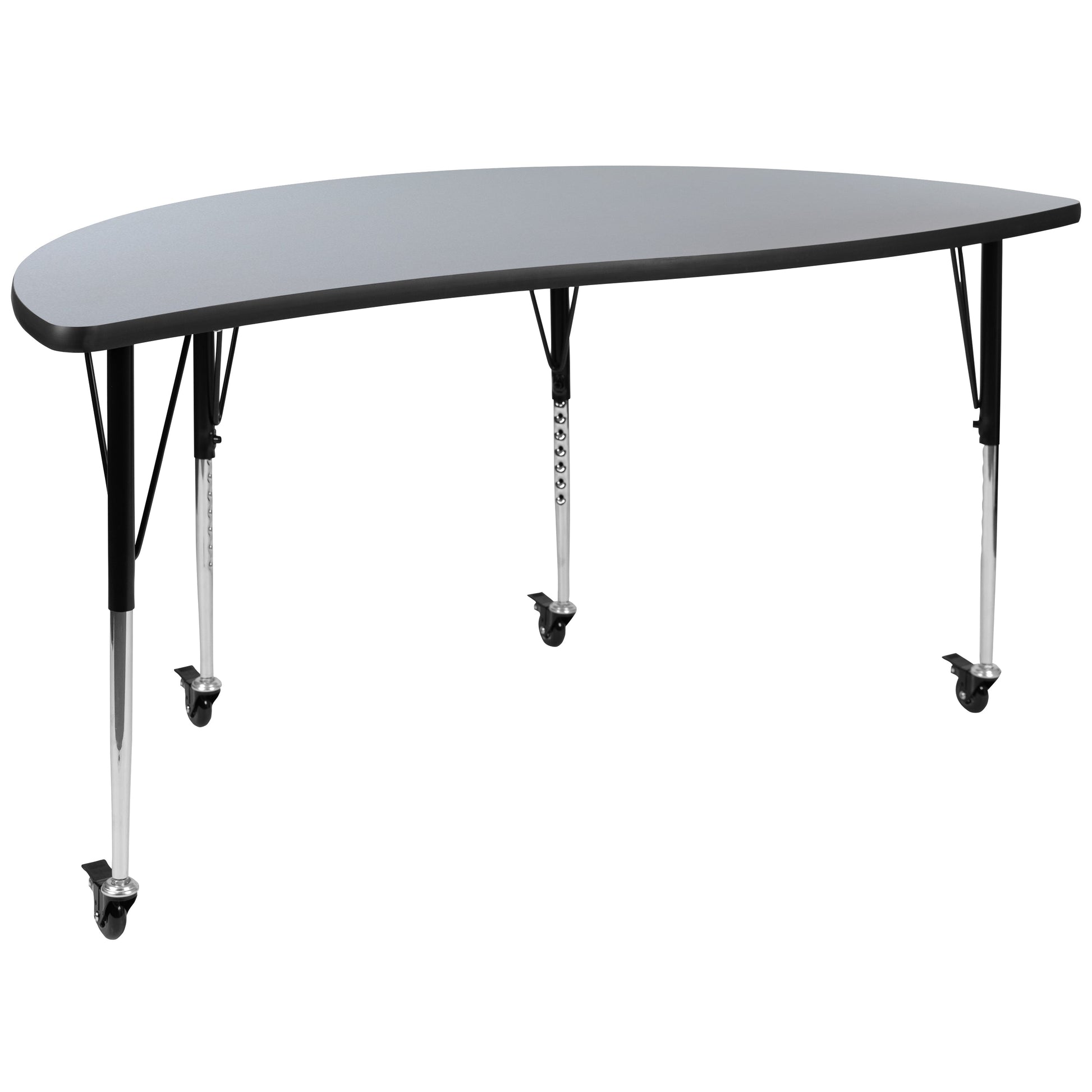 Emmy 3 Piece Mobile 86" Oval Wave Flexible Grey Thermal Laminate Activity Table Set-Standard Height Adjustable Legs Dimensions: 60"W x 86"D x 22" - 30"H