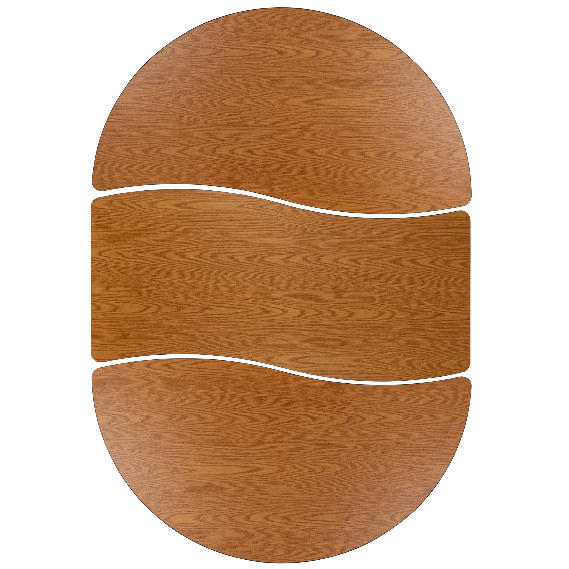 Emmy 3 Piece Mobile 86" Oval Wave Flexible Oak Thermal Laminate Activity Table Set - Height Adjustable Short Legs Dimensions: 60"W x 86"D x 17" - 25"H