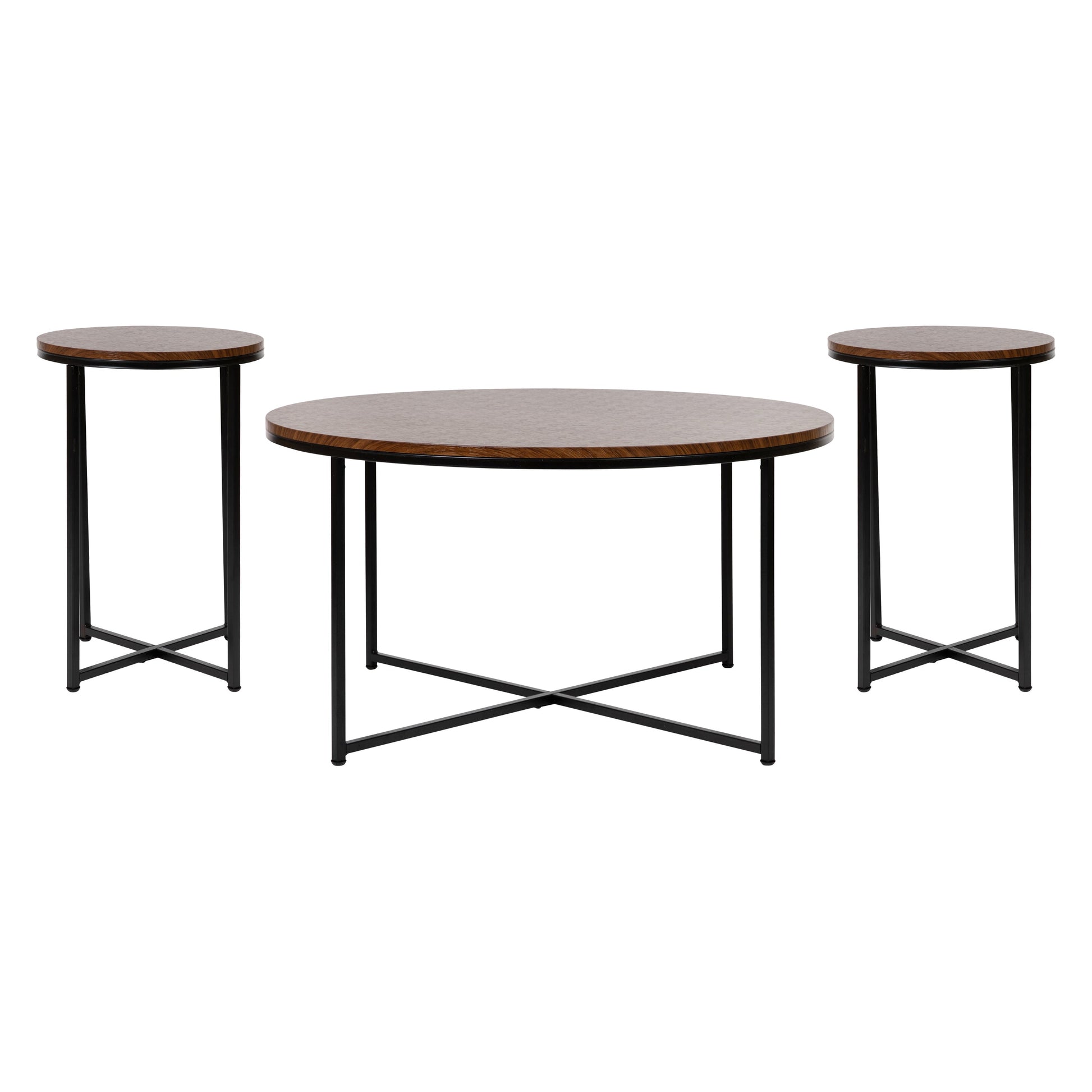 Hampstead Collection Coffee and End Table Set - Walnut Laminate Top & Matte Black Crisscross Frame, 3 Piece Table Set Dimensions: 15.75" - 35.5"W x 15.75" - 35.5"D x 19.25" - 24"H