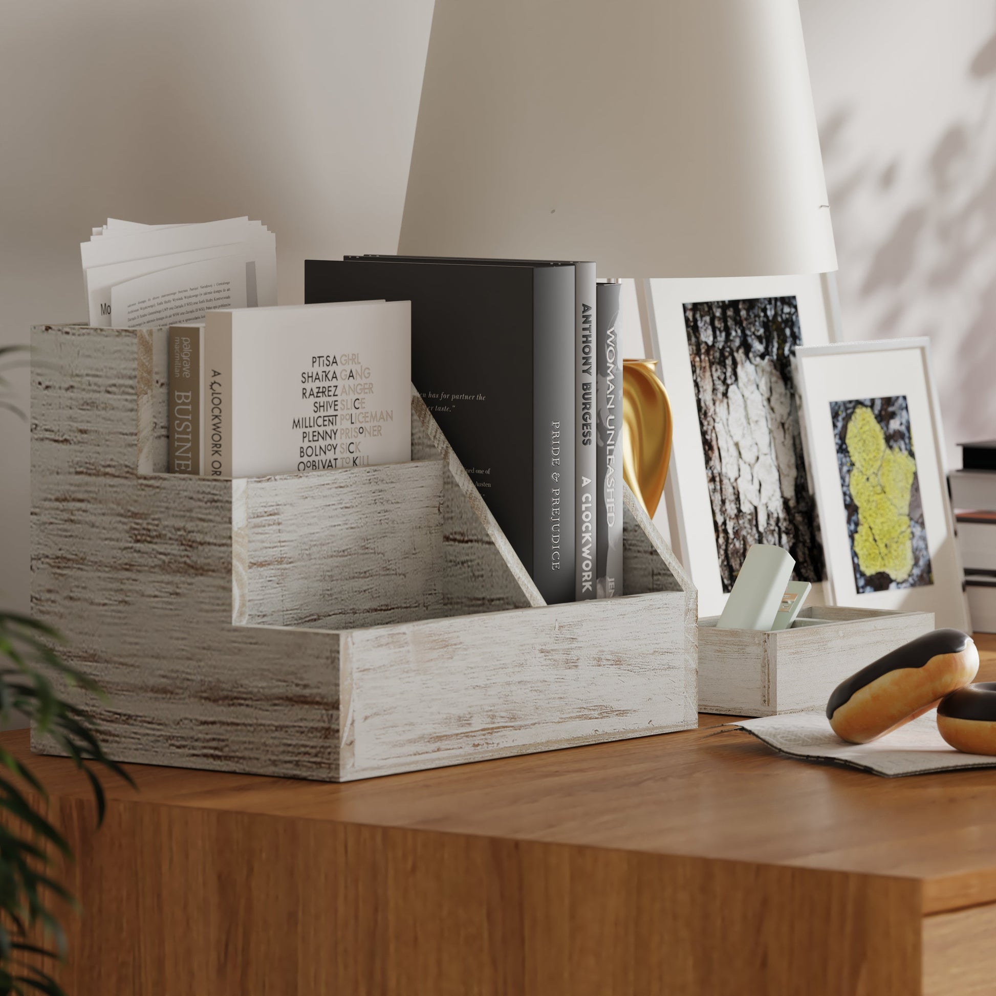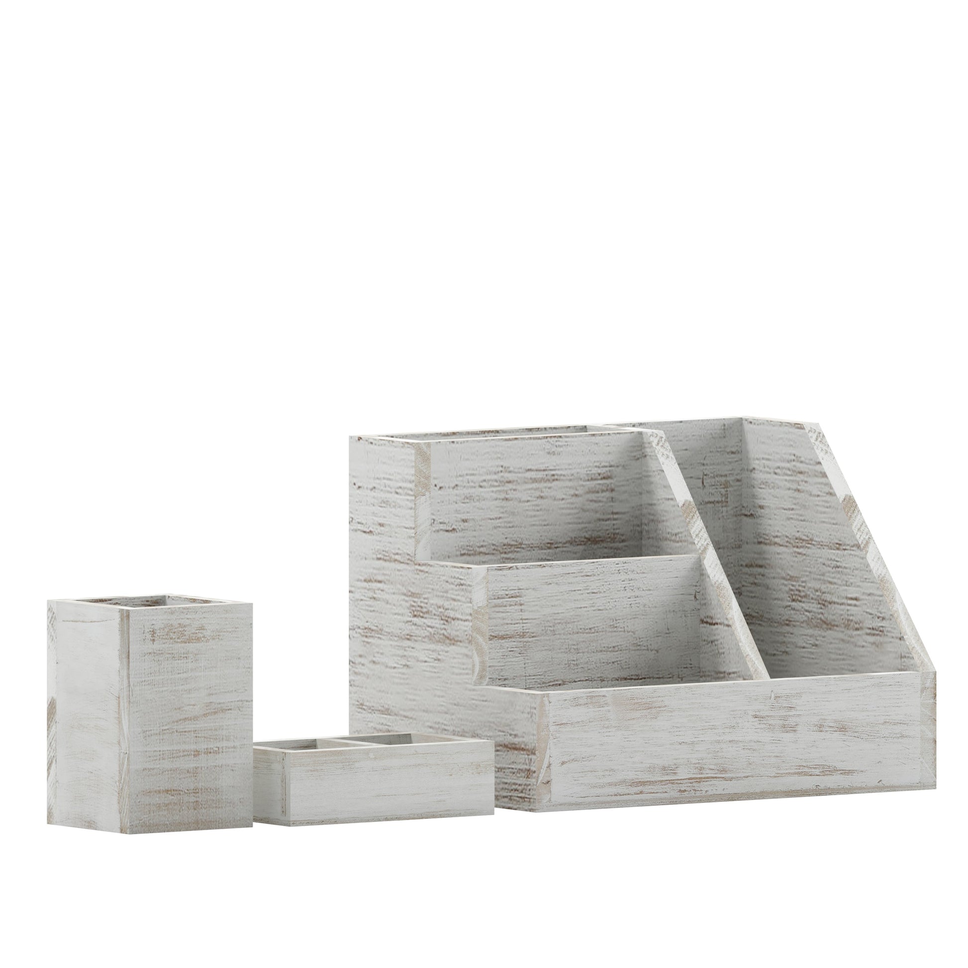 Comerford 3 Piece Wooden Organizer Set For Desktop, Table Top, or Vanity in Whitewashed Dimensions: 9.75"W x 6"D x 7.25"H