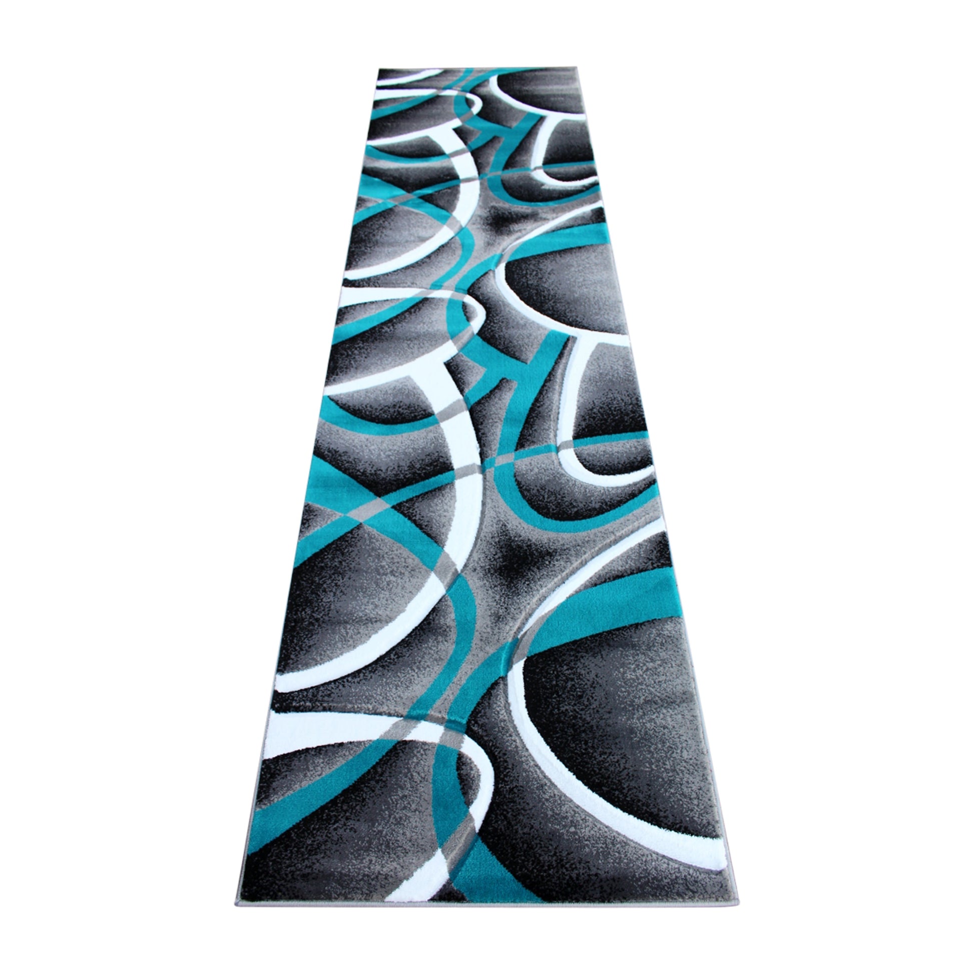 Atlan Collection 3' x 10' Turquoise Abstract Area Rug - Olefin Rug with Jute Backing - Entryway, Living Room or Bedroom Dimensions: 33.6"W x 120"D x 0.5"H