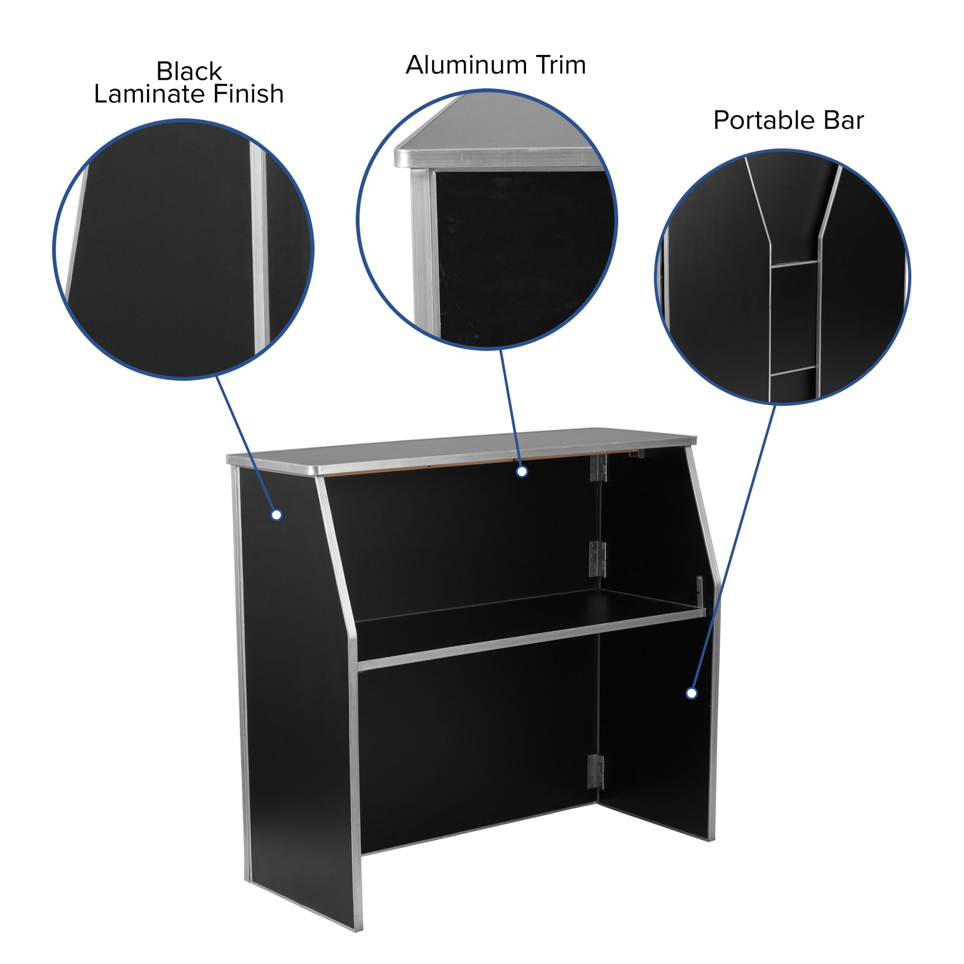 Amara 4' Black Laminate Foldable Bar - Portable Event Bar Dimensions: 47.75"W x 19.5"D x 42.75"H