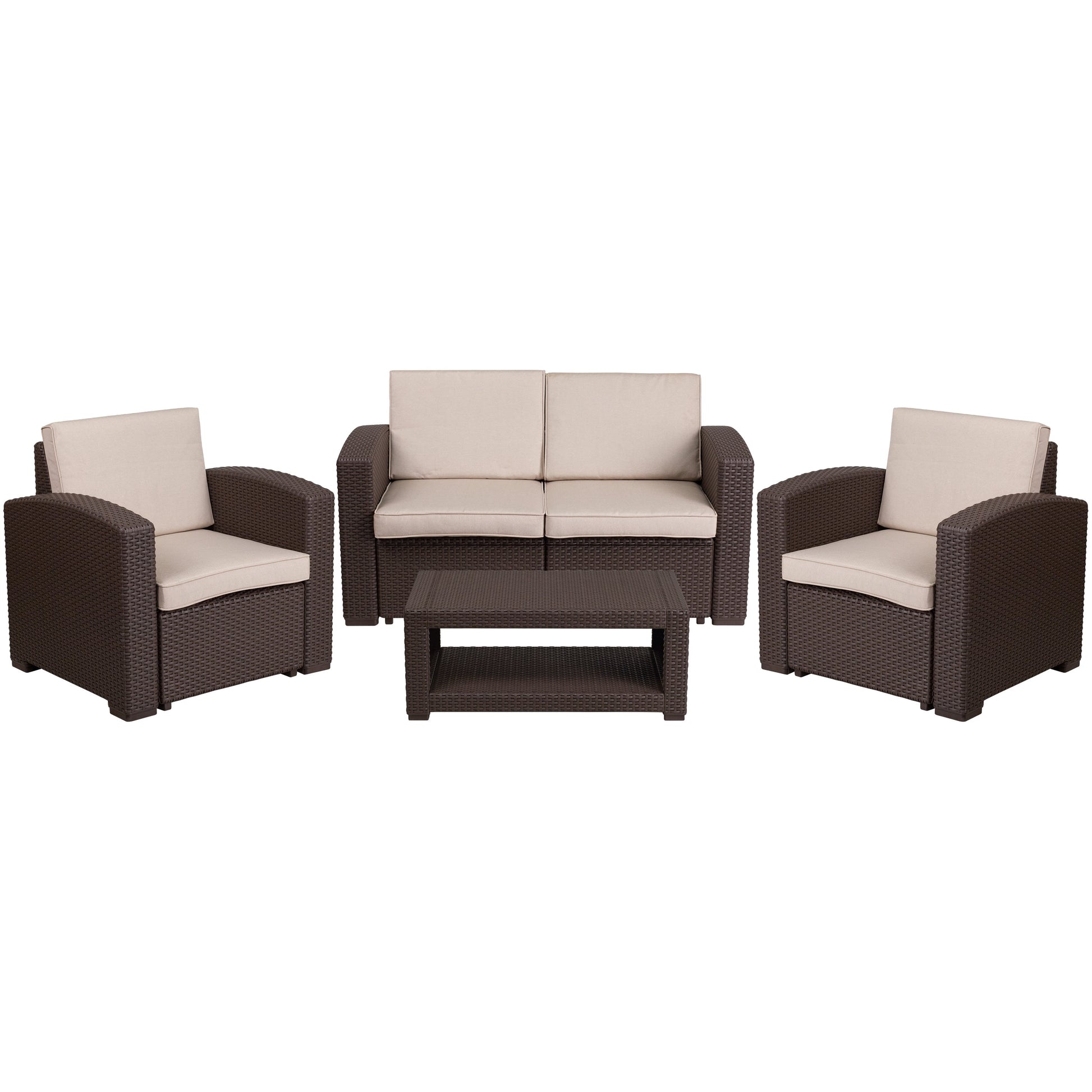 4 PC Brown Outdoor Rattan Set DAD-SF-112T-CBN-GG