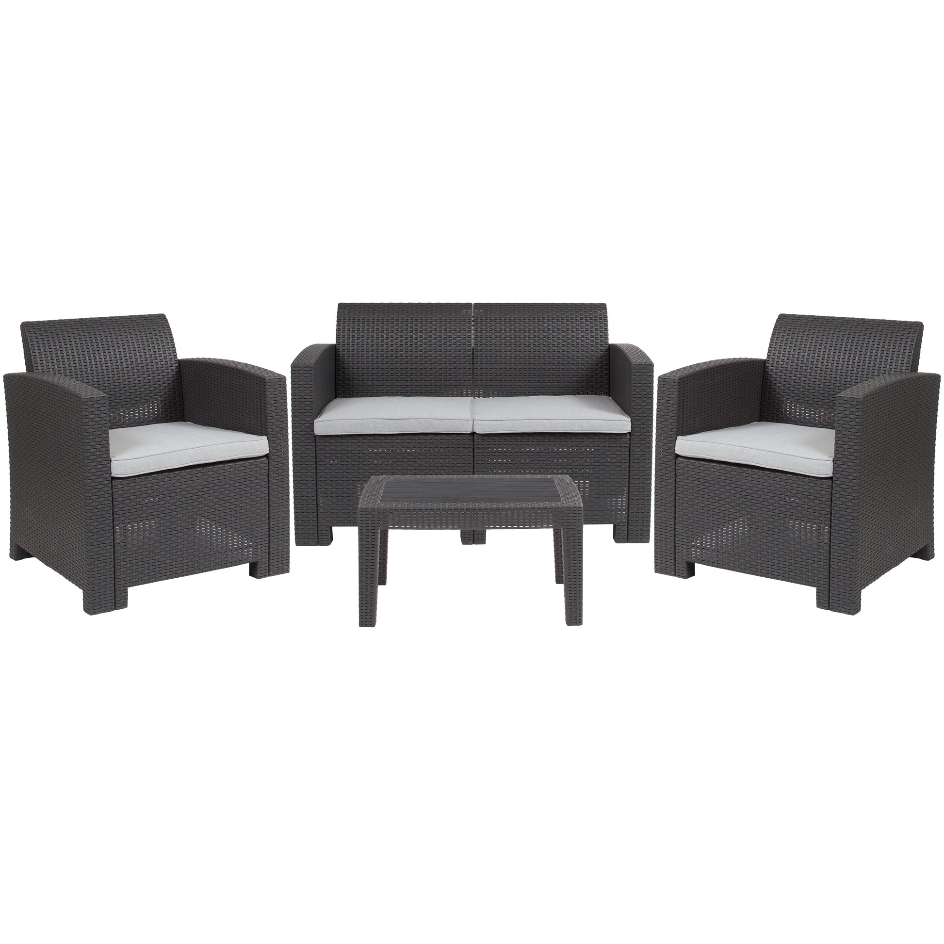 4 PC Gray Outdoor Rattan Set DAD-SF-112T-DKGY-GG