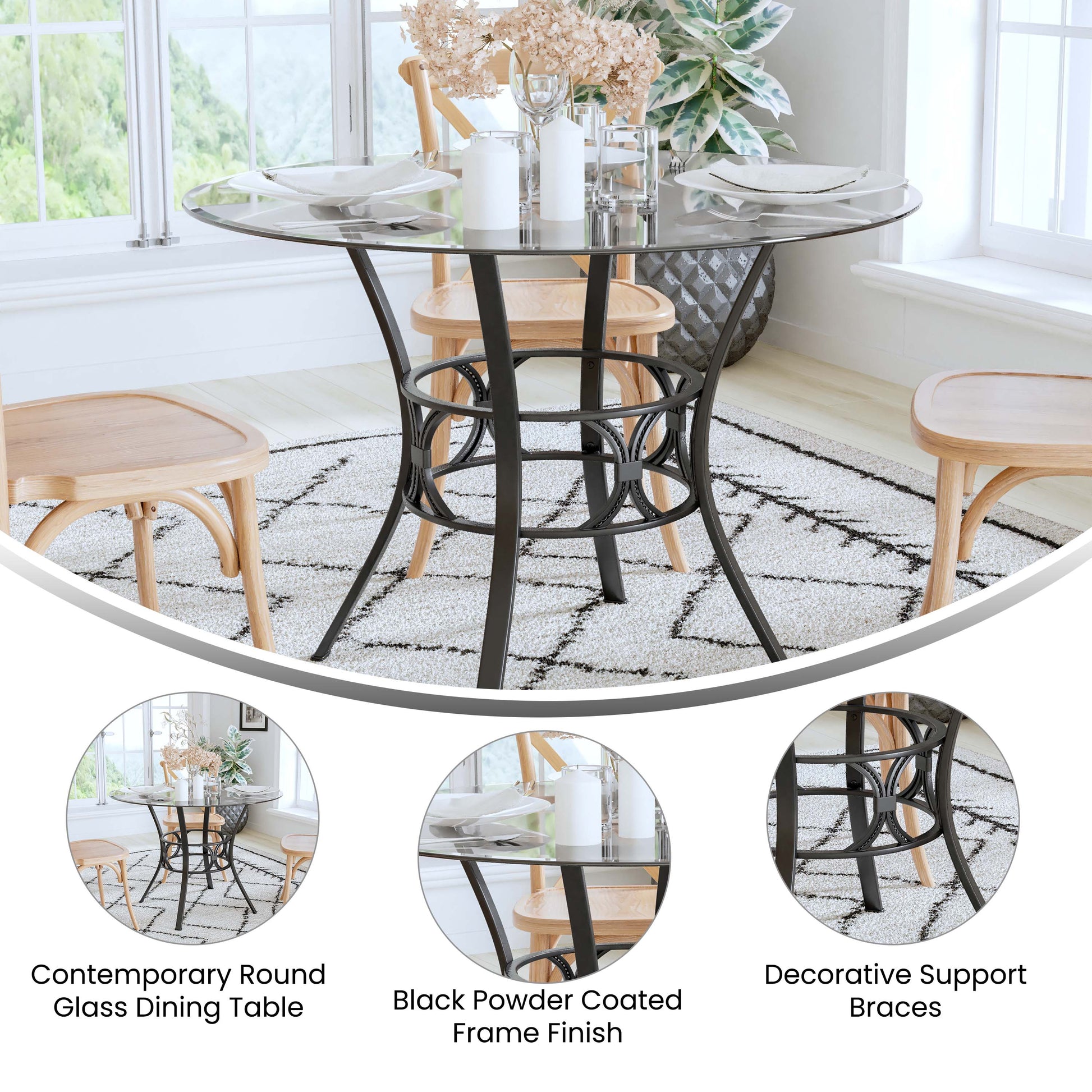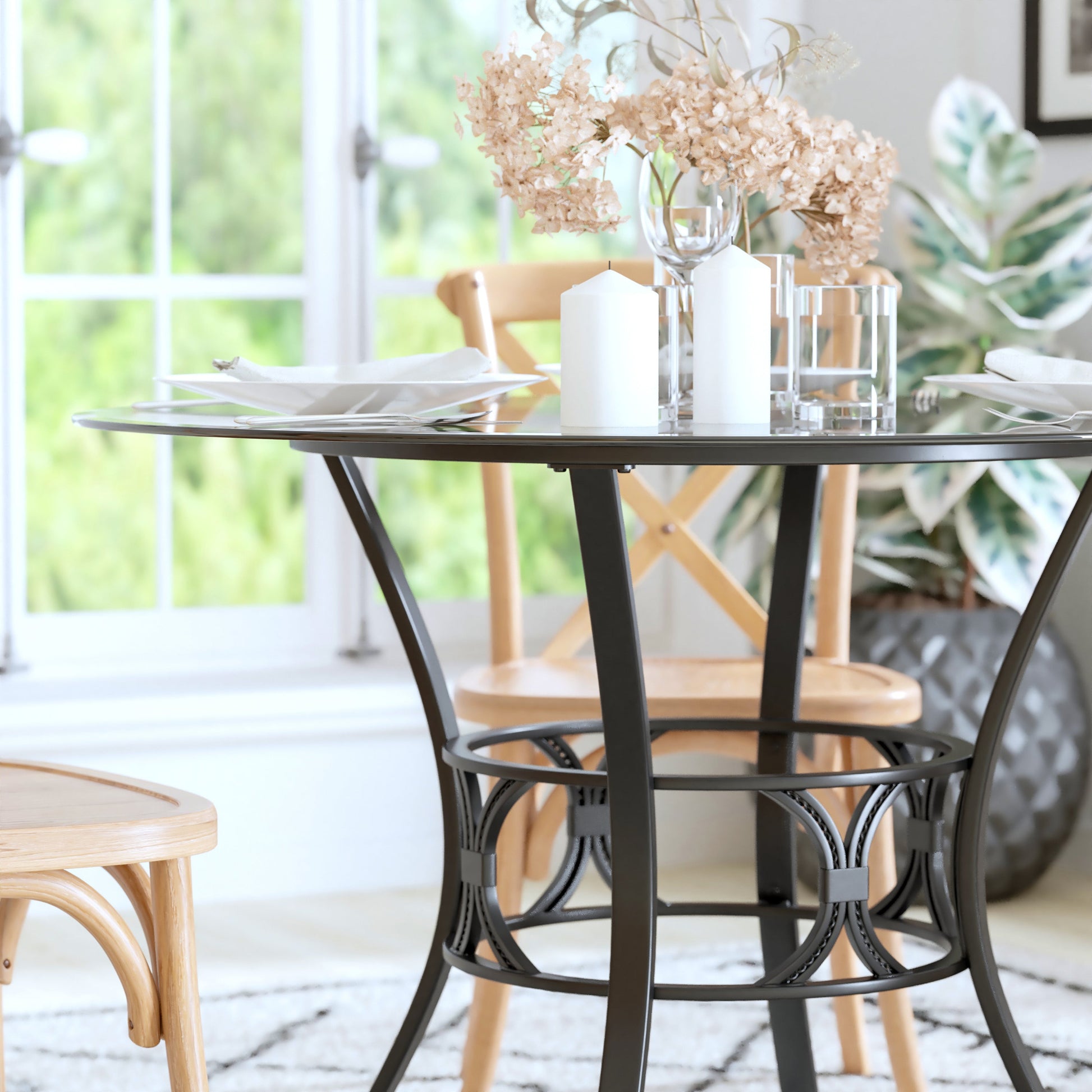Carlisle 42'' Round Glass Dining Table with Black Metal Frame Dimensions: 42"W x 42"D x 29.5"H