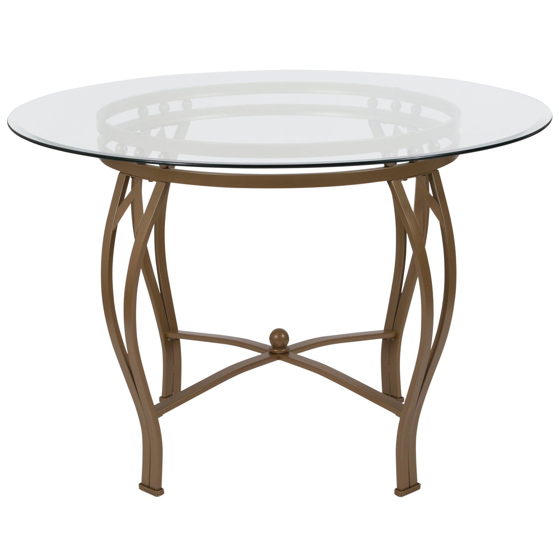 Syracuse 45'' Round Glass Dining Table with Matte Gold Metal Frame Dimensions: 45"W x 45"D x 29.5"H