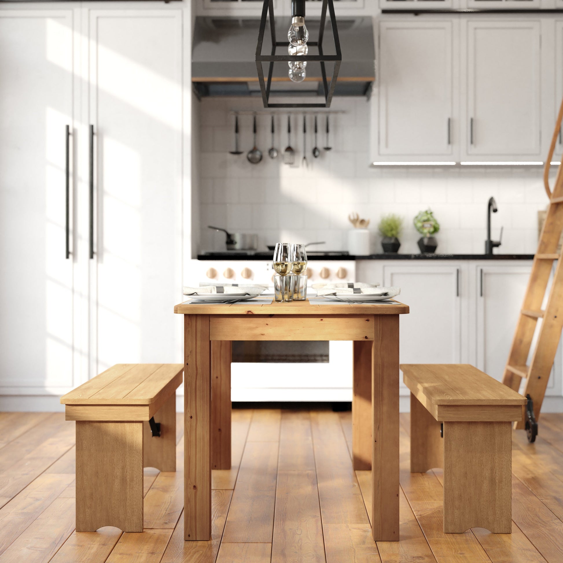 HERCULES 46" x 30" Rectangular Antique Rustic Light Natural Solid Pine Farm Dining Table Dimensions: 30"W x 46"D x 30"H