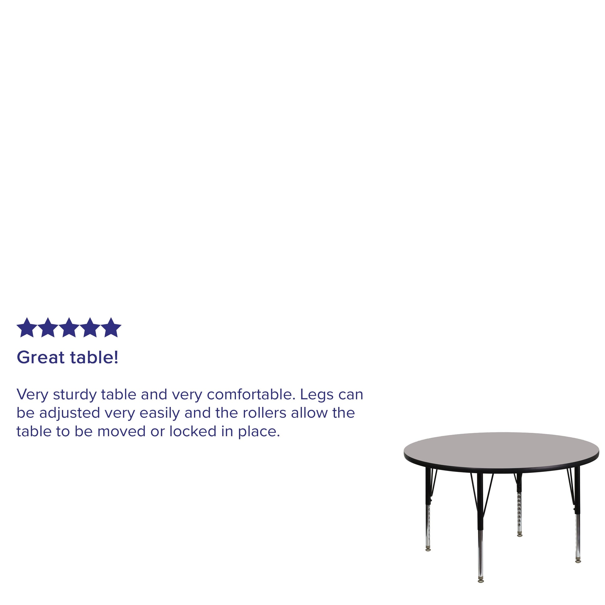 Wren 48'' Round Grey HP Laminate Activity Table - Height Adjustable Short Legs Dimensions: 48"W x 48"D x 16.25" - 25.25"H