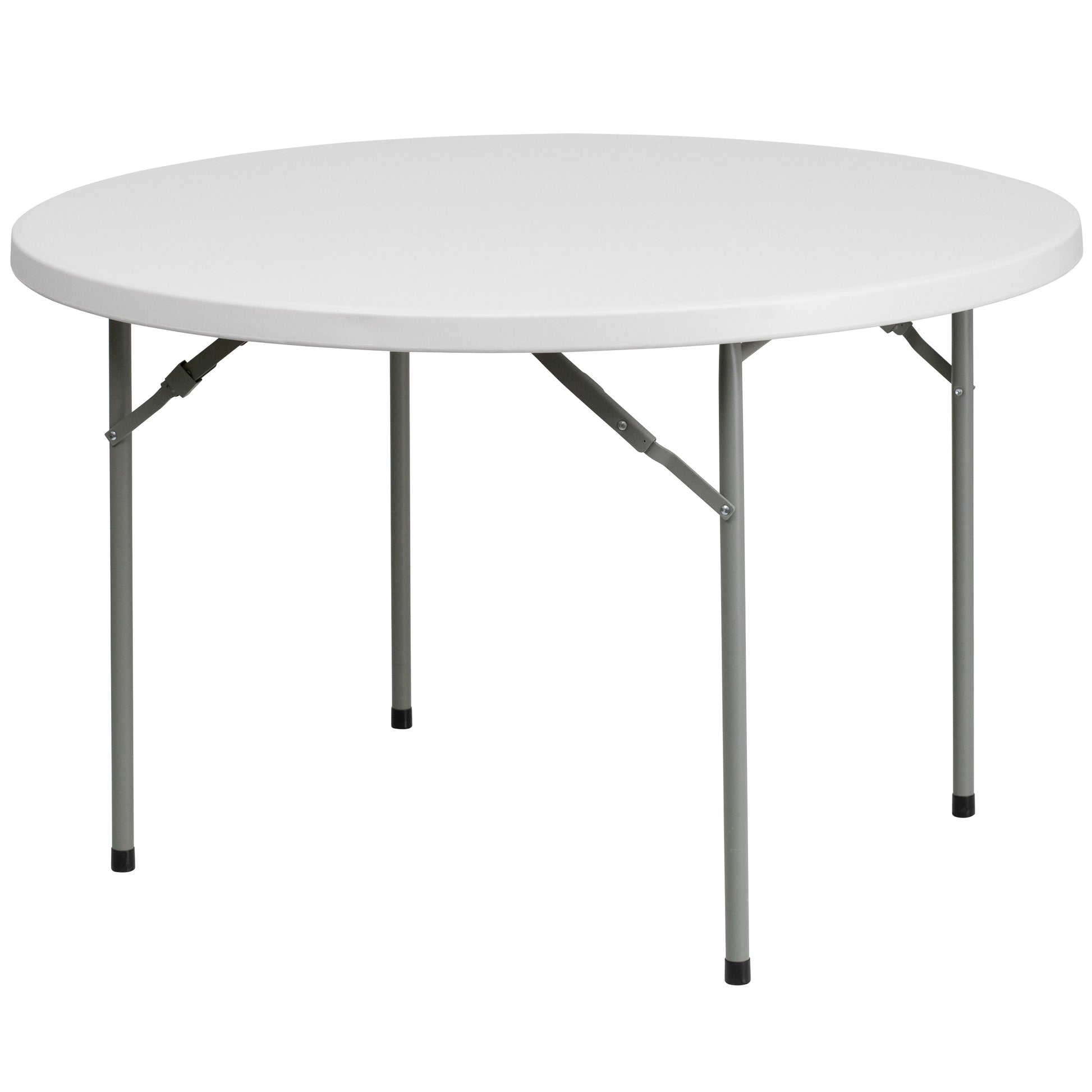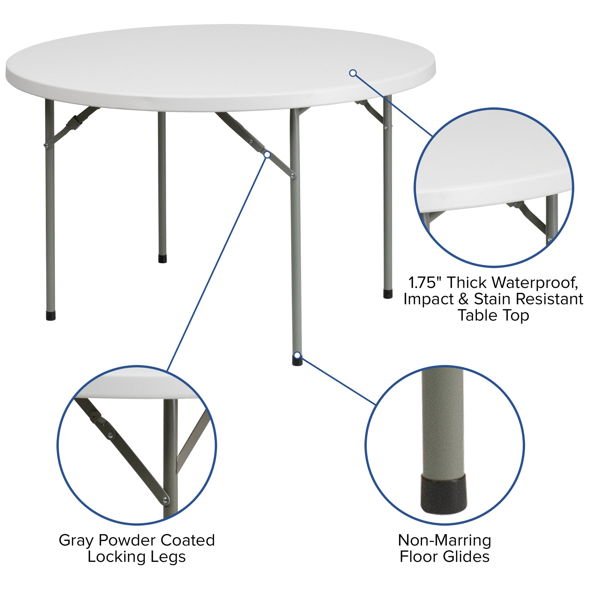 Kathryn 4-Foot Round Granite White Plastic Folding Table Dimensions: 48"W x 48"D x 29"H