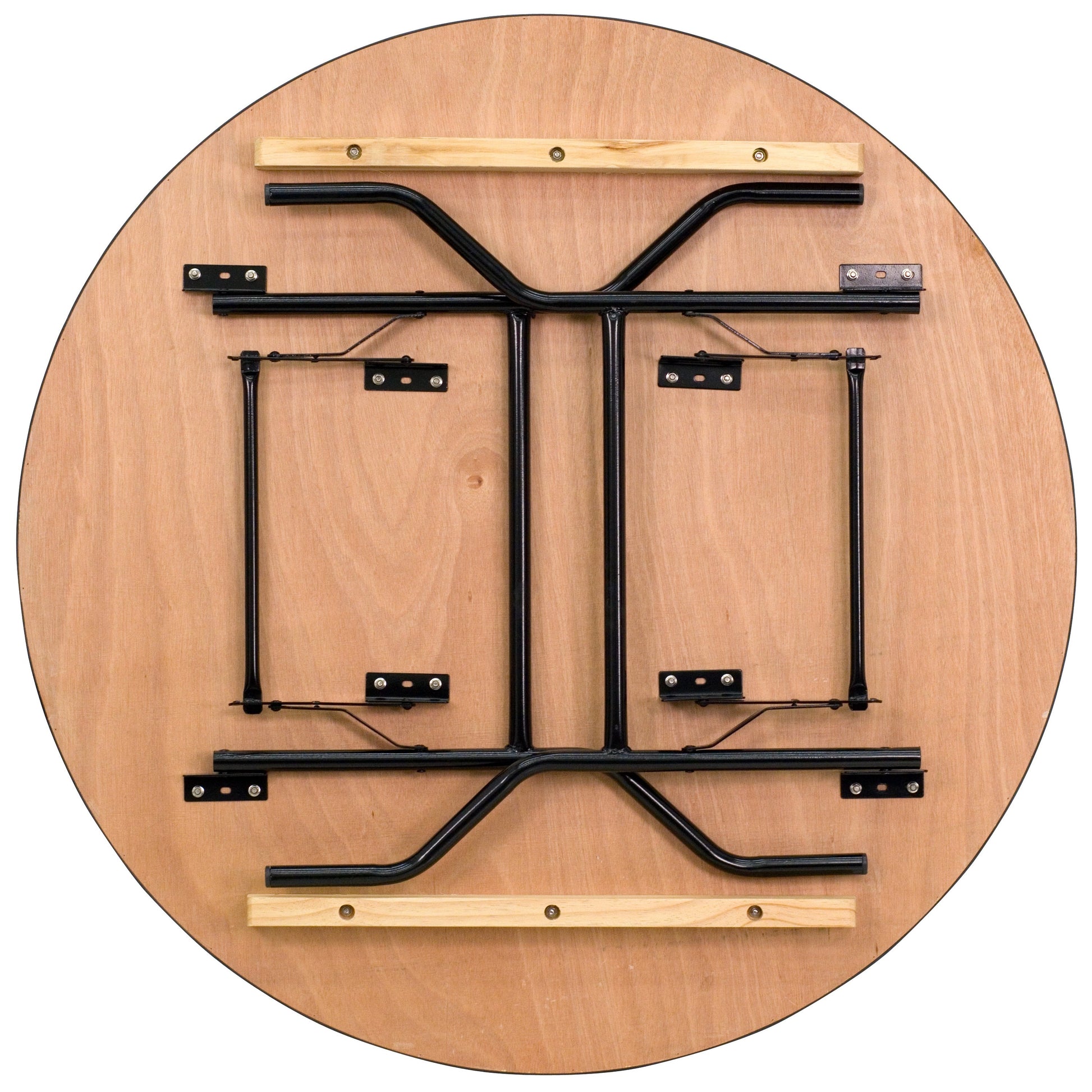 Furman 4-Foot Round Wood Folding Banquet Table with Clear Coated Finished Top Dimensions: 48"W x 48"D x 30.25"H