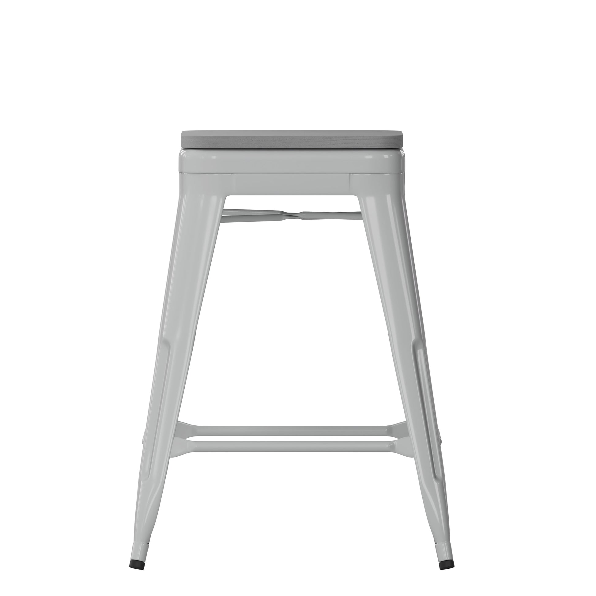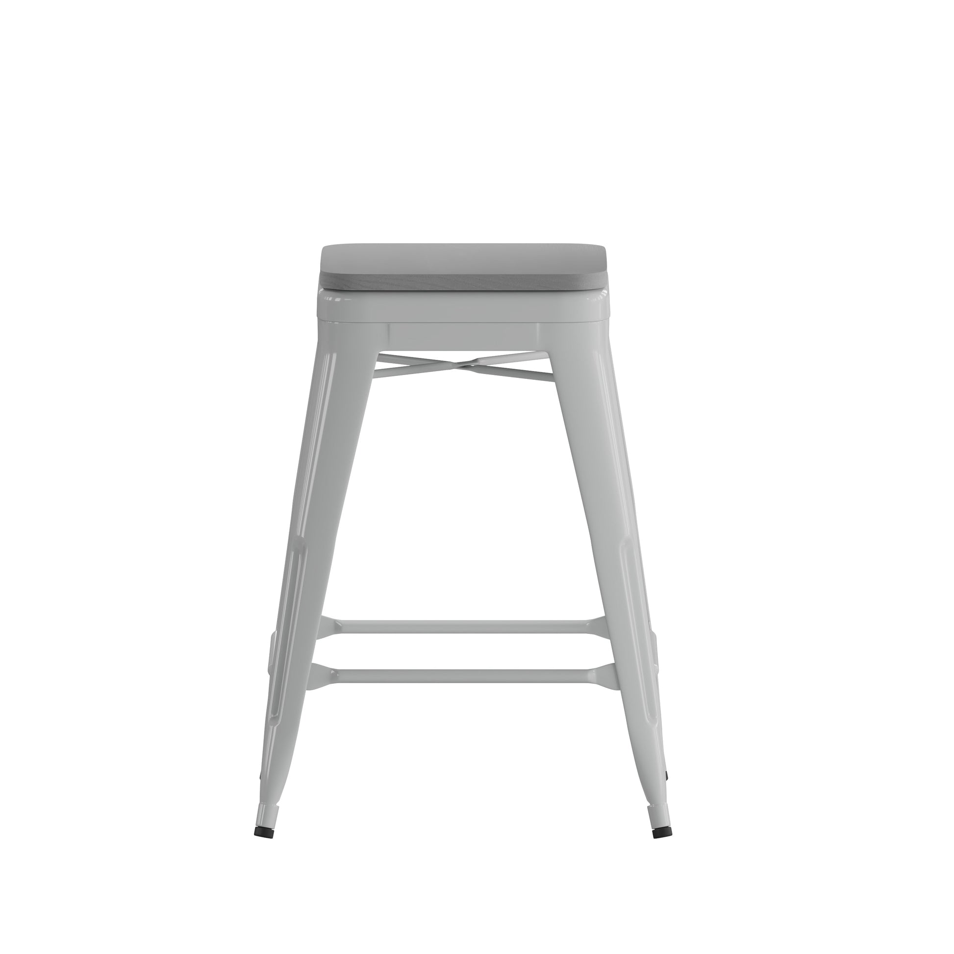 Cierra Set of 4 Commercial Grade 24" High Backless Silver Metal Indoor Counter Height Stools with Gray All-Weather Poly Resin Seats Dimensions: 16"W x 16"D x 24.75"H