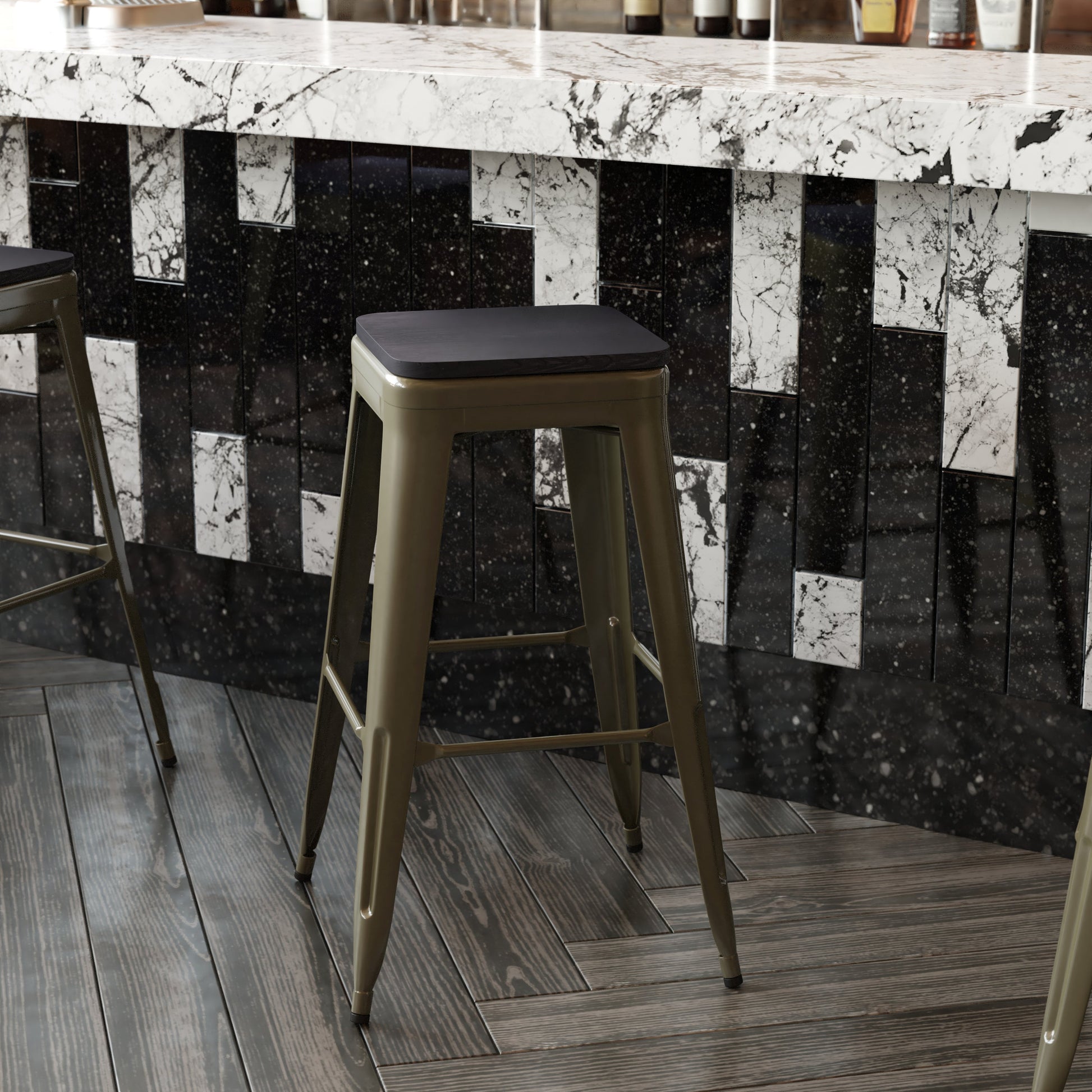 4PK 30" GN Stool-Black Seat 4-ET-31320-30-GN-R-PL2B-GG