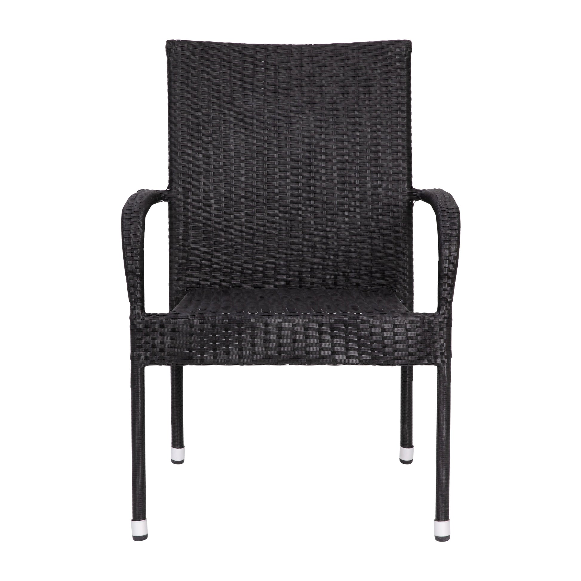 Maxim Set of 4 Stackable Indoor/Outdoor Wicker Dining Chairs with Arms - Fade & Weather-Resistant Steel Frames - Black Dimensions: 26"W x 24"D x 36.5"H