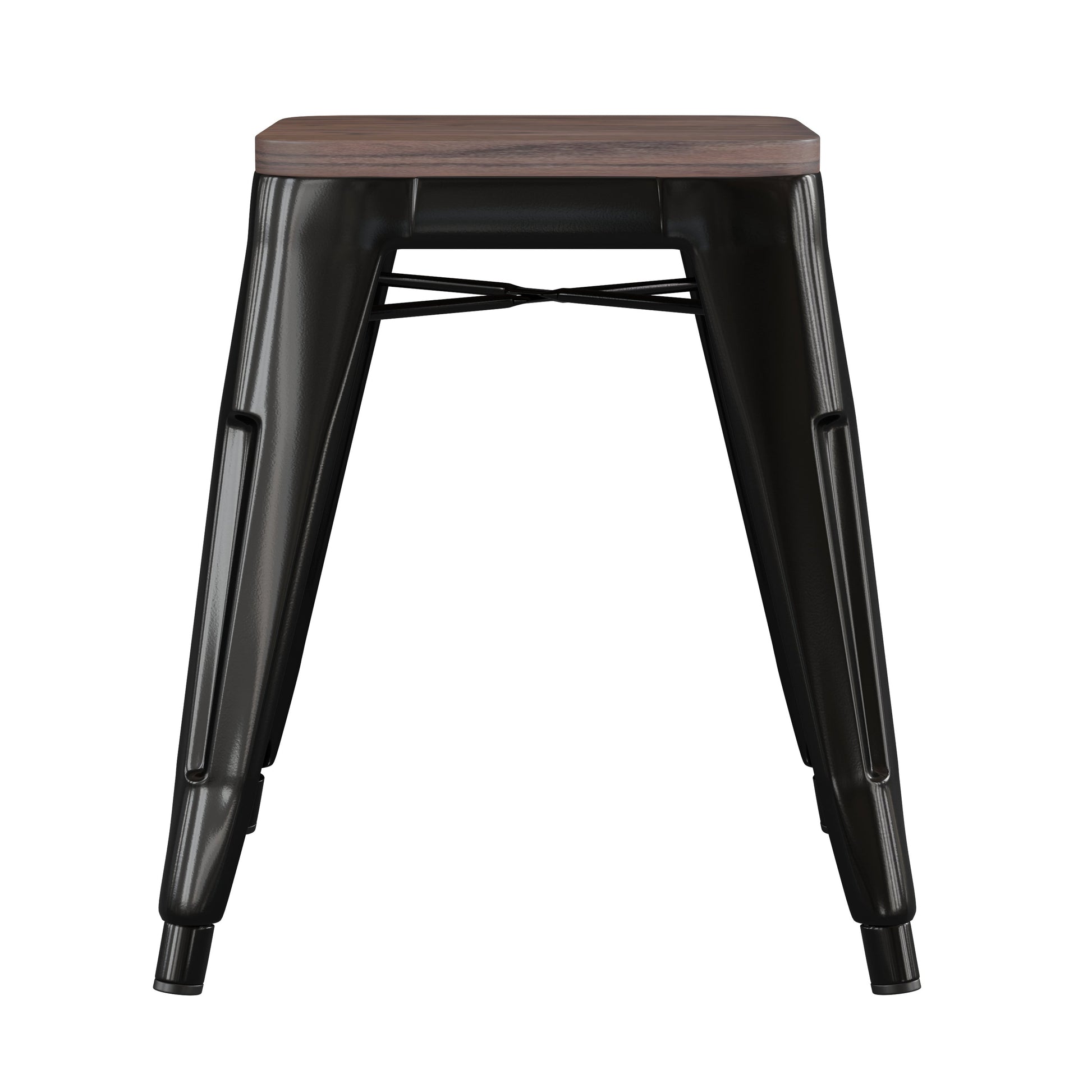 Kai 18" Backless Table Height Stool with Wooden Seat, Stackable Black Metal Indoor Dining Stool, Commercial Grade - Set of 4 Dimensions: 15.75"W x 15.75"D x 18"H