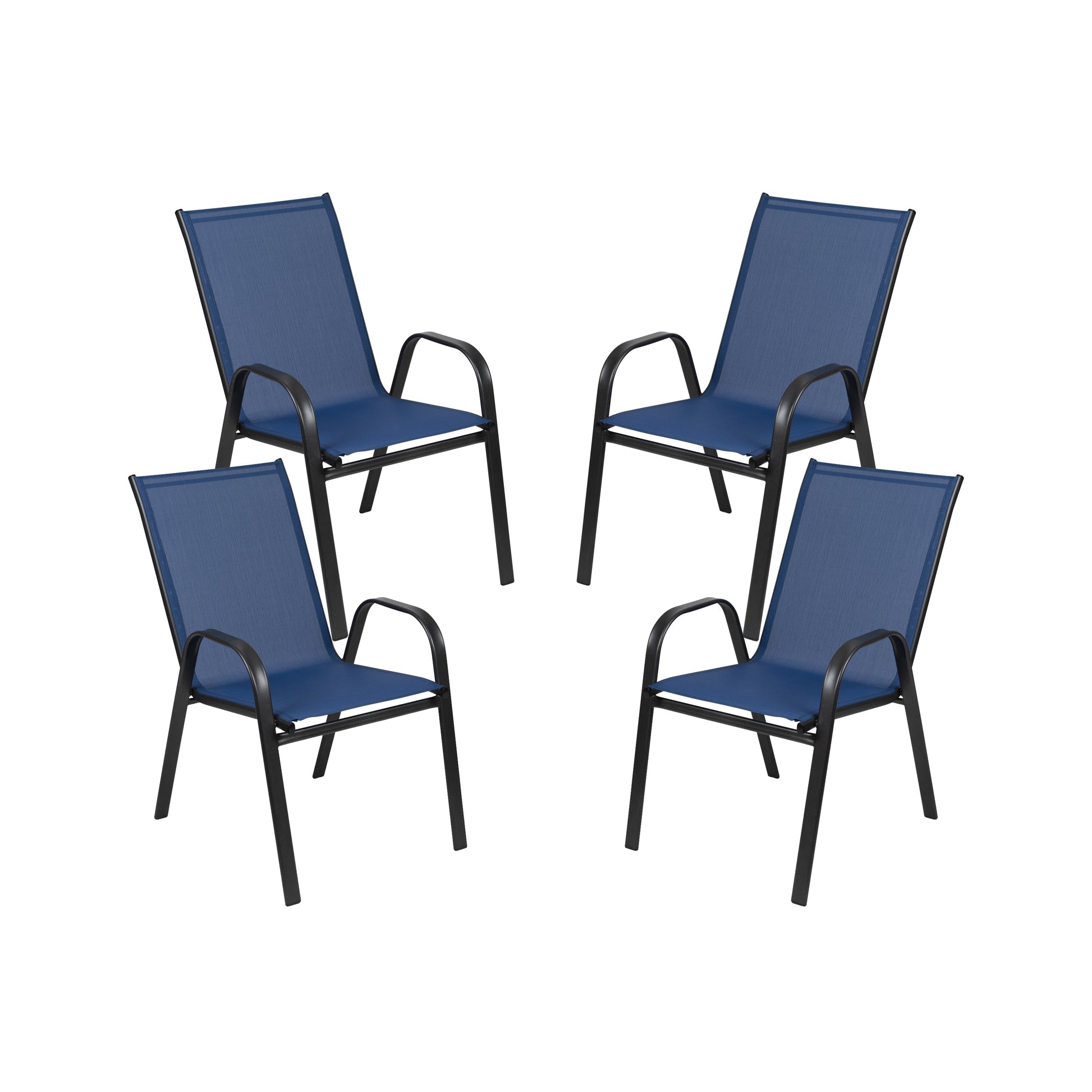 4 Pack Brazos Series Navy Outdoor Stack Chair with Flex Comfort Material and Metal Frame Dimensions: 21.25"W x 29"D x 36"H