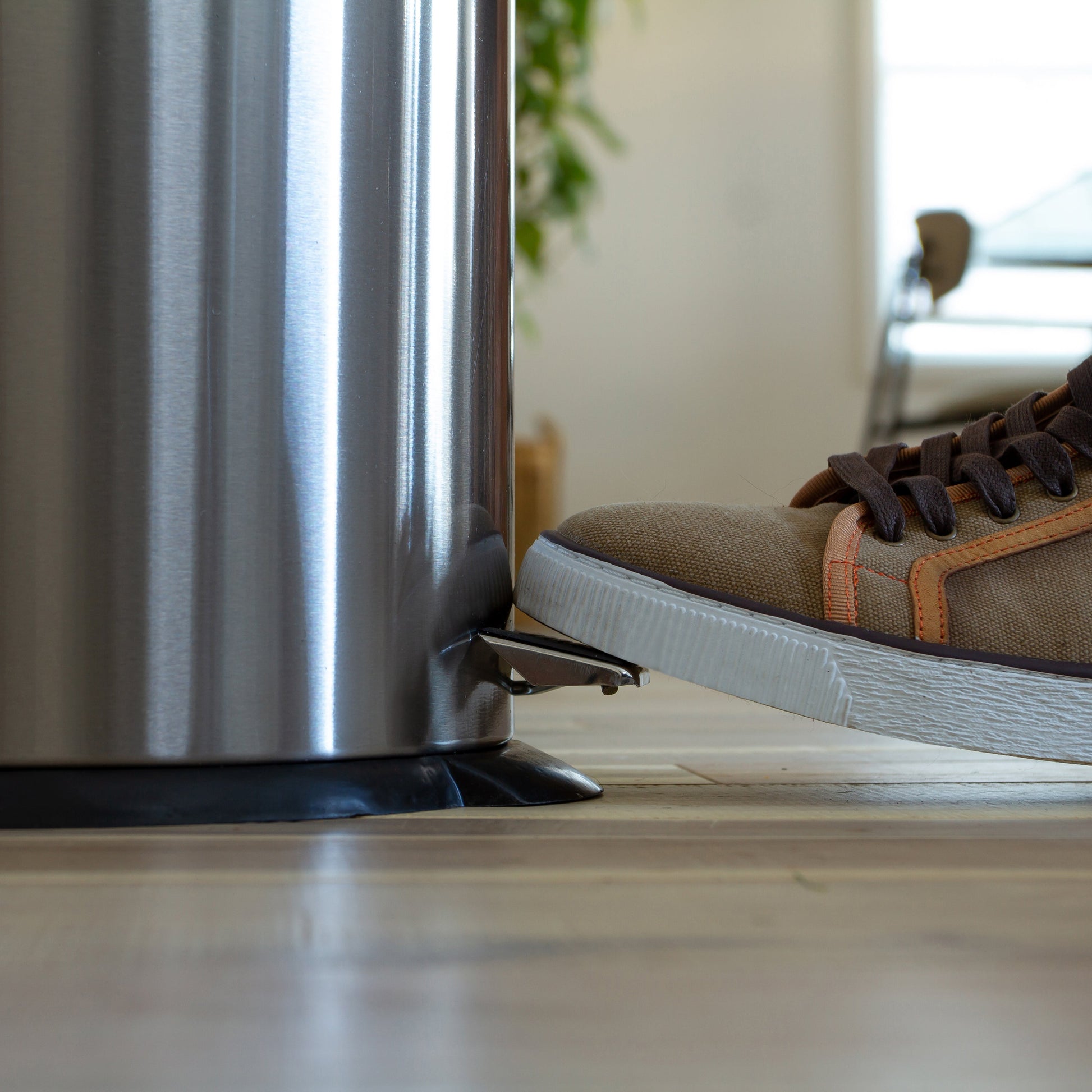 Round Stainless Steel Fingerprint Resistant Soft Close, Step Trash Can - 5.3 Gallons (20L) Dimensions: 11.5"W x 13.5"D x 18"H