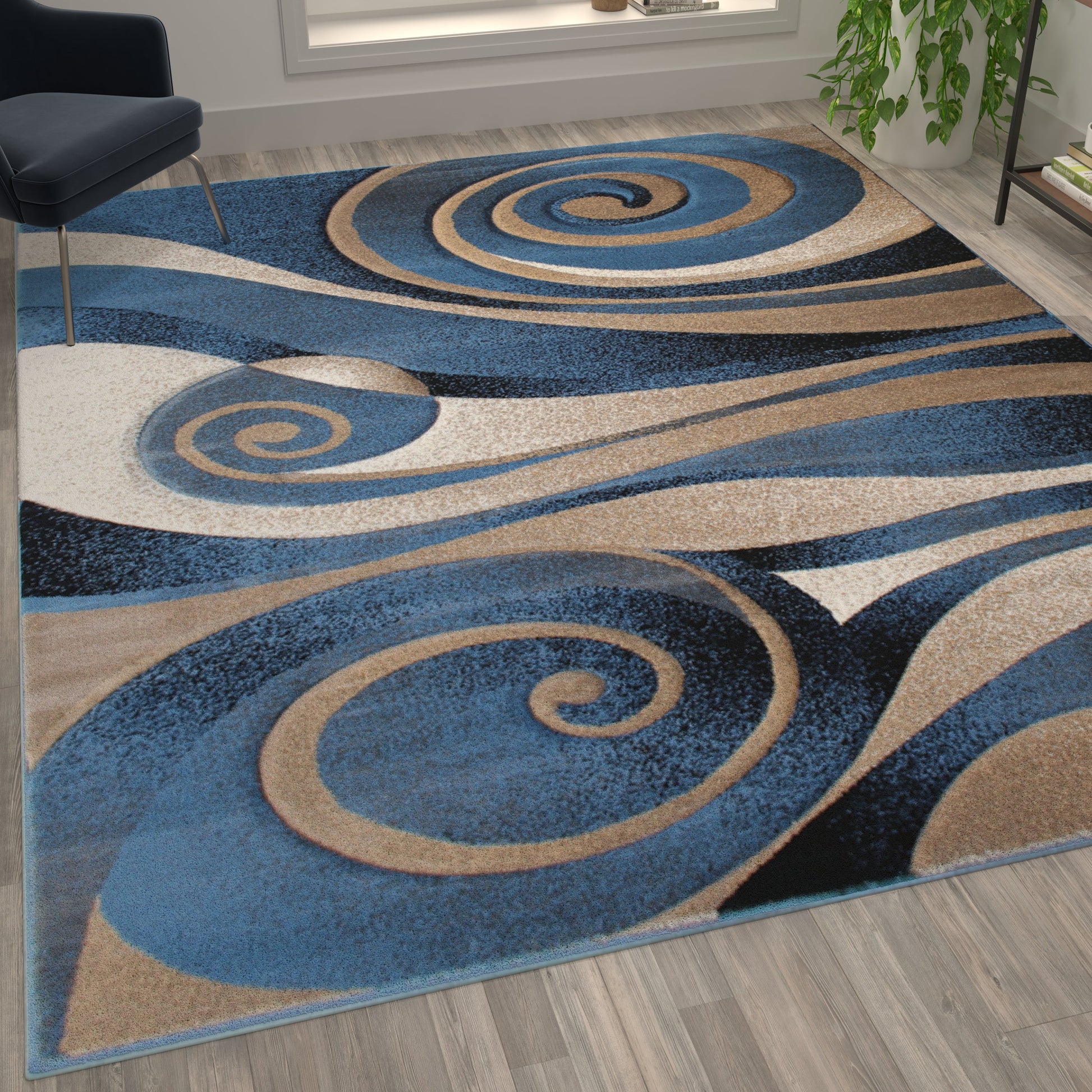 Coterie Collection 5' x 7' Modern Circular Patterned Indoor Area Rug - Blue and Beige Olefin Fibers with Jute Backing Dimensions: 62.4"W x 85.2"D x 0.5"H