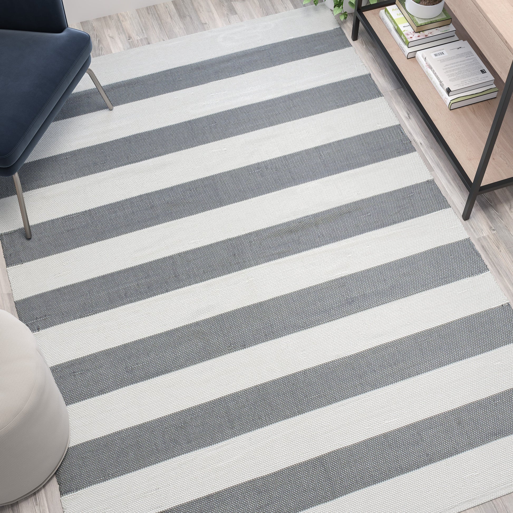 Melissa 5' x 7' Grey & White Striped Handwoven Indoor/Outdoor Cabana Style Stain Resistant Area Rug Dimensions: 60"W x 81.5"D x 0.375"H