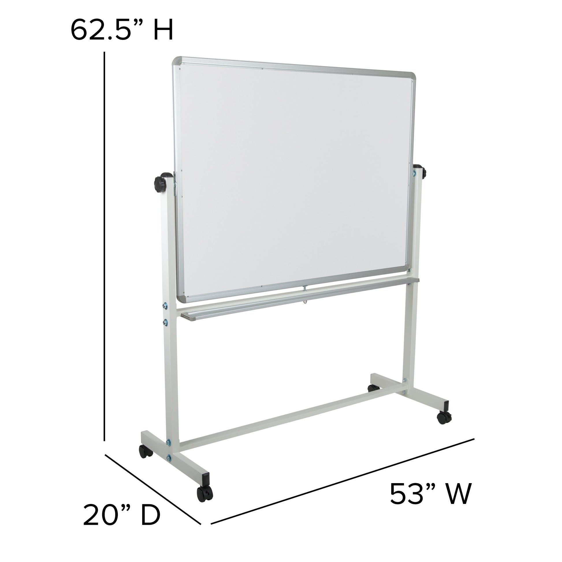 HERCULES Series 53"W x 62.5"H Double-Sided Mobile White Board with Pen Tray Dimensions: 53"W x 20"D x 62.5"H