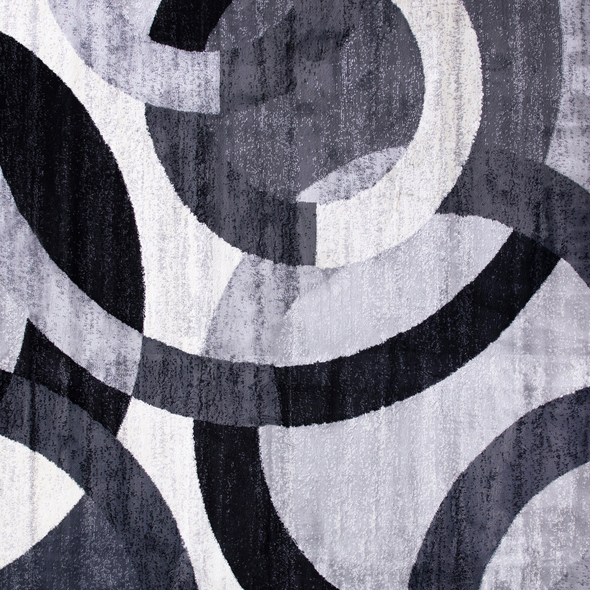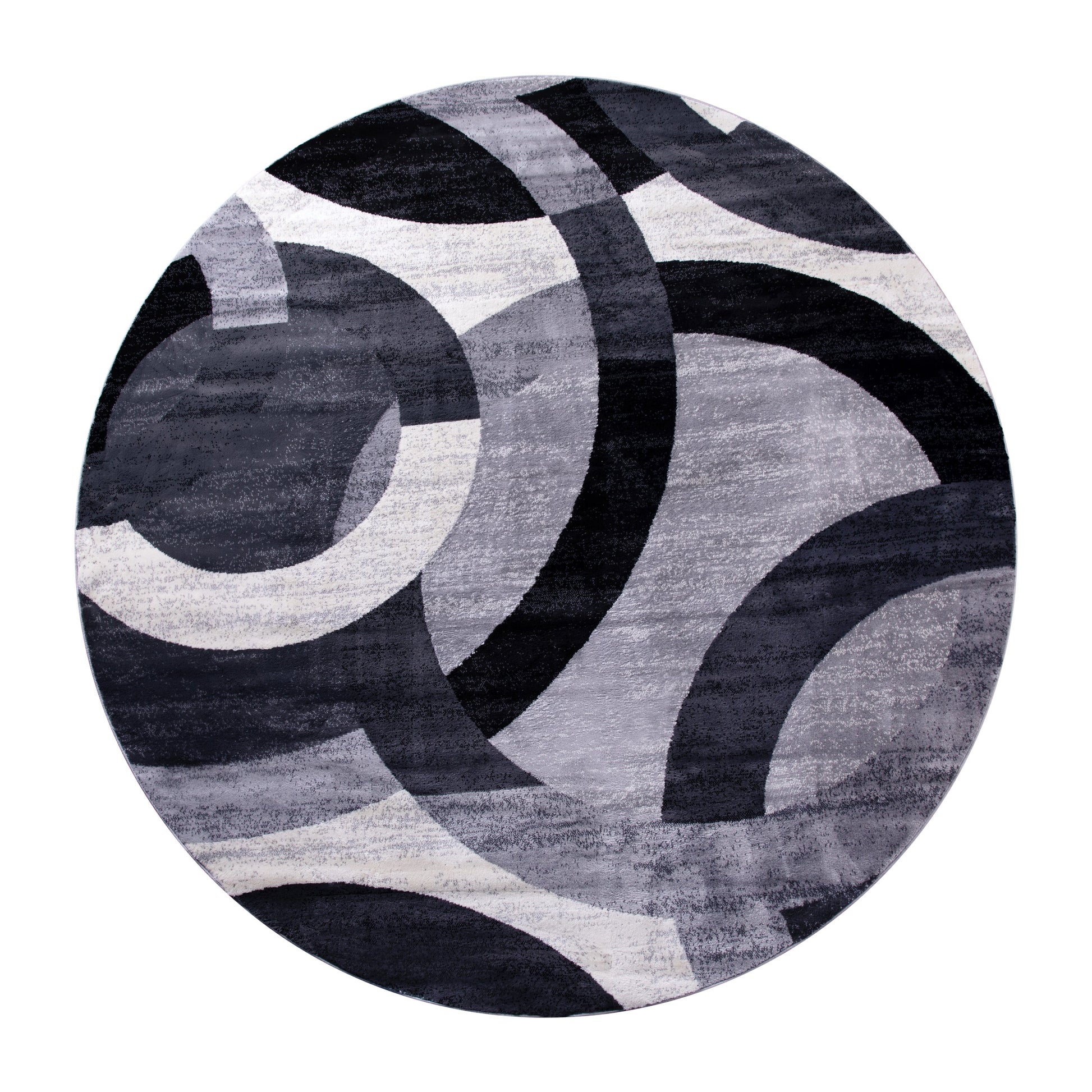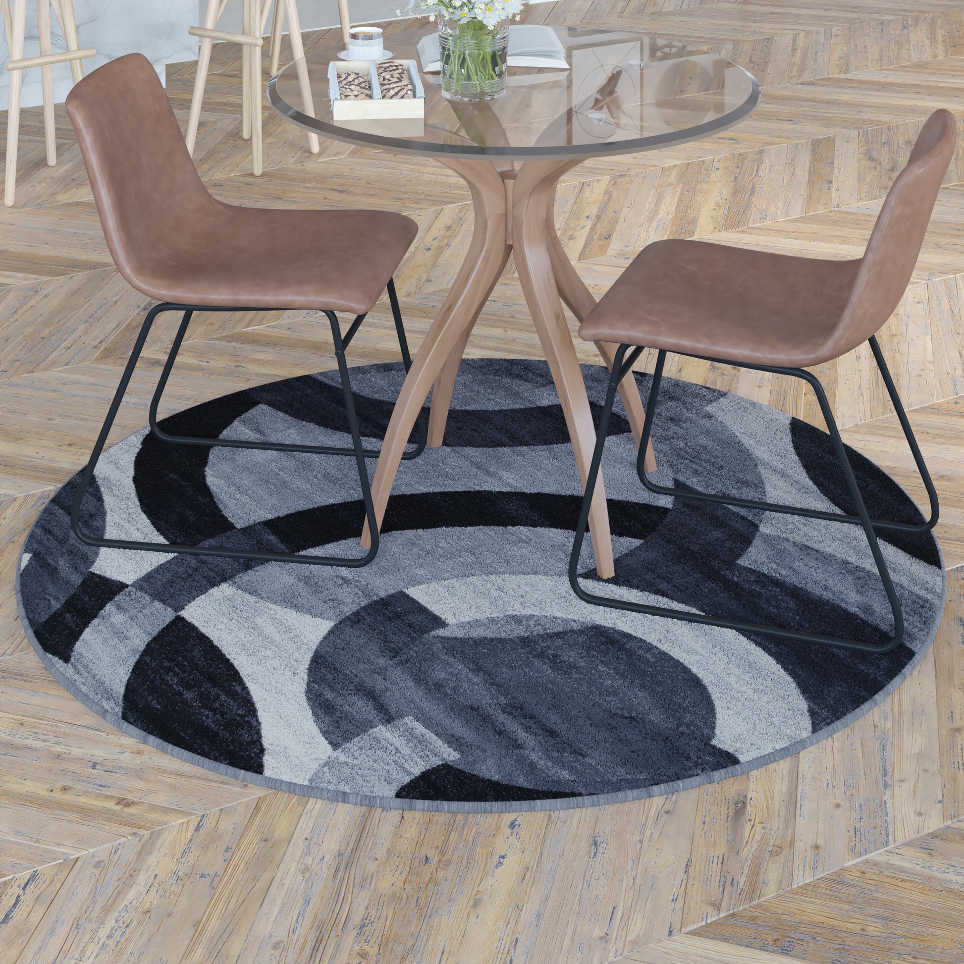 Harken Collection Geometric 5' x 5' Black and Gray Round Olefin Area Rug with Jute Backing, Living Room, Bedroom Dimensions: 60"W x 60"D x 0.5"H