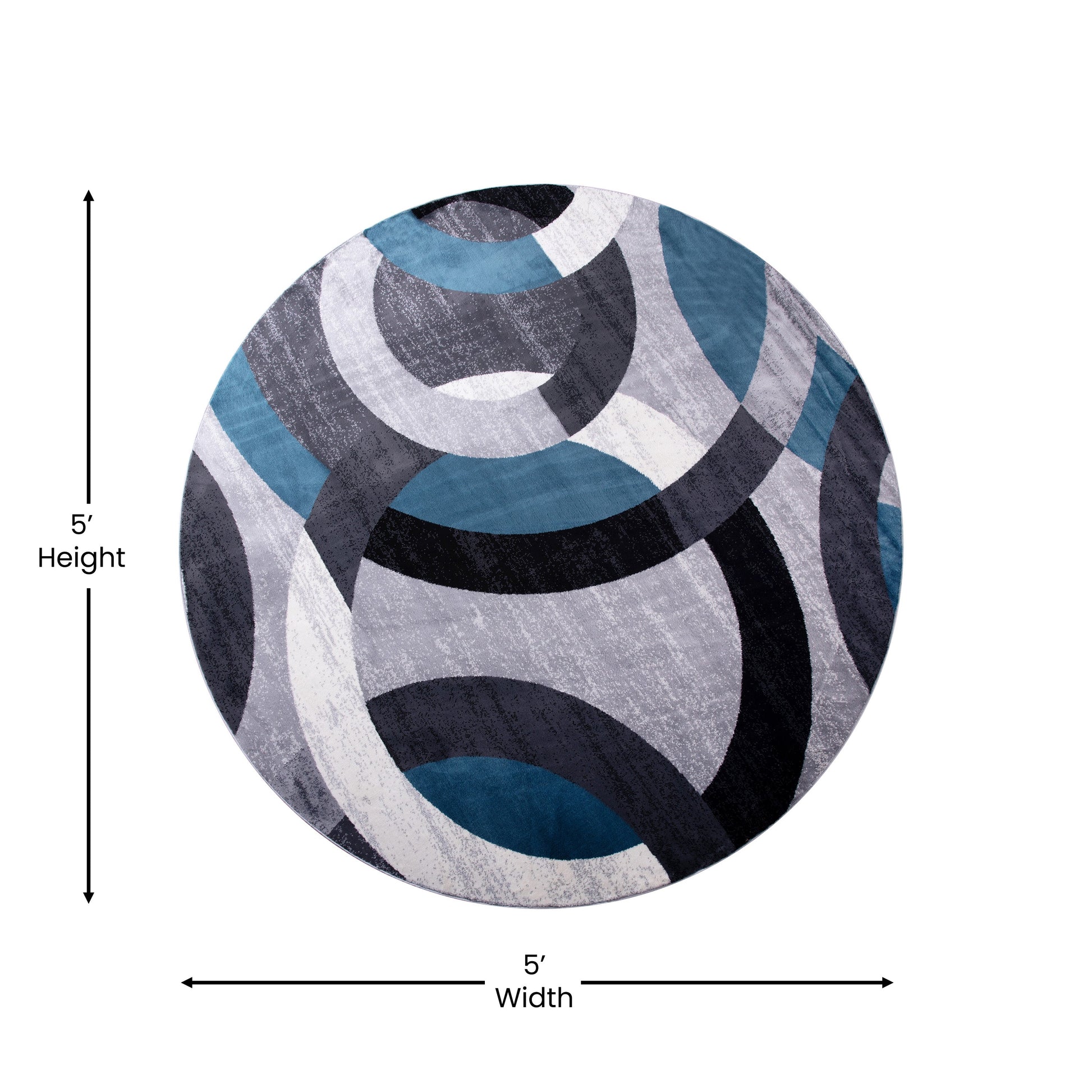 Harken Collection Geometric 5' x 5' Blue and Gray Round Olefin Area Rug with Jute Backing, Living Room, Bedroom Dimensions: 60"W x 60"D x 0.5"H