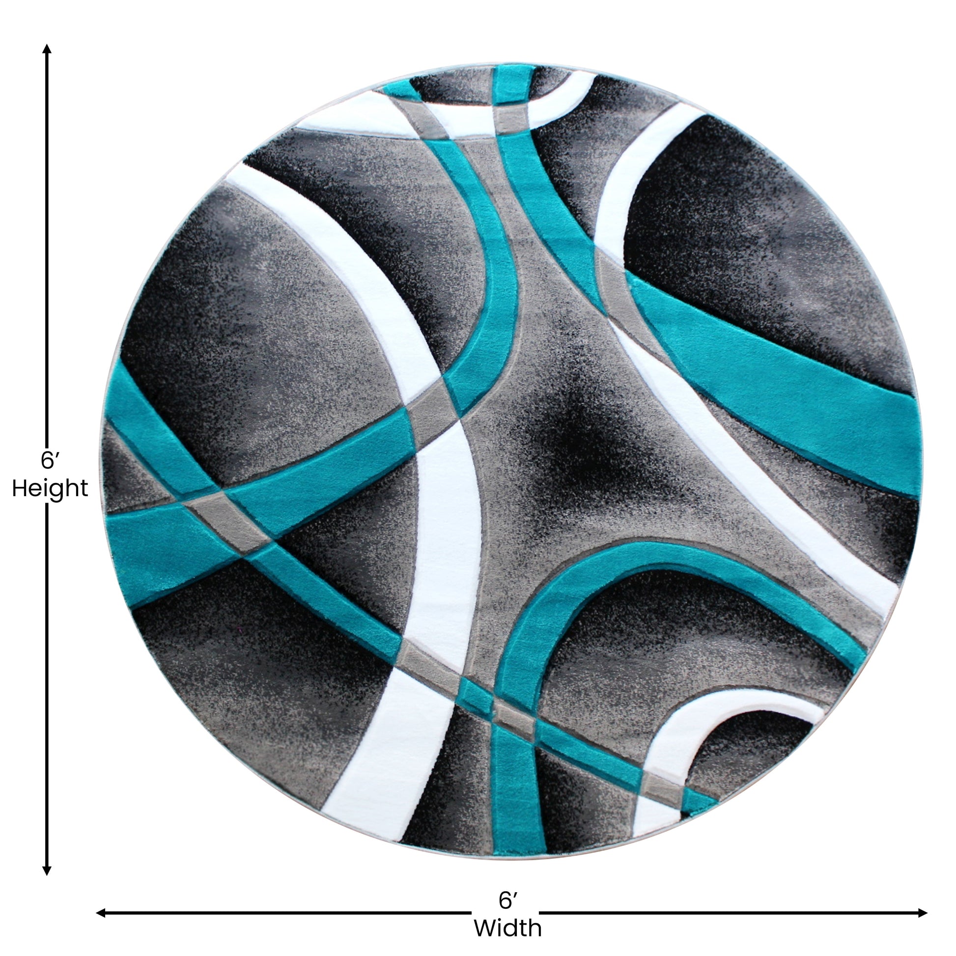 Atlan Collection 5' x 5' Turquoise Round Abstract Area Rug - Olefin Rug with Jute Backing - Entryway, Living Room or Bedroom Dimensions: 63.6"W x 63.6"D x 0.5"H