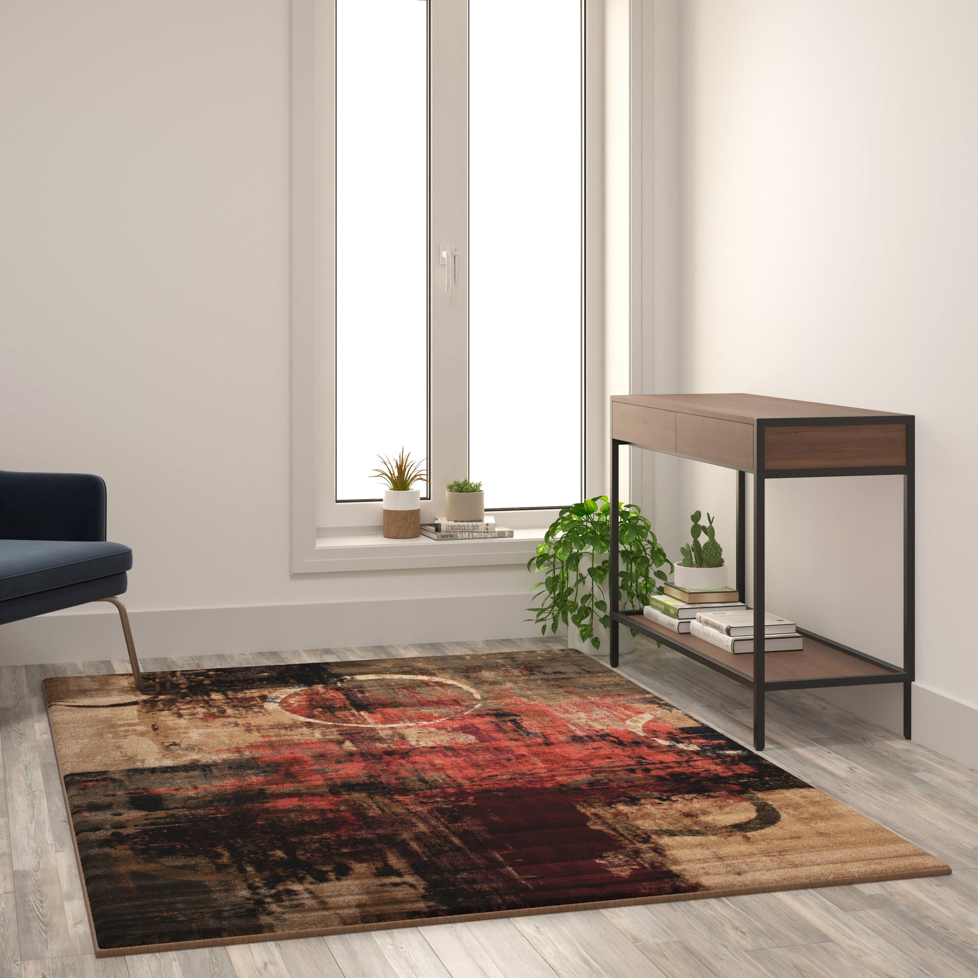 Caldor Collection Abstract 5' x 7' Warm Beige, Green, and Red Olefin Area Rug with Jute Backing, Living Room, Bedroom Dimensions: 60"W x 90"D x 0.5"H