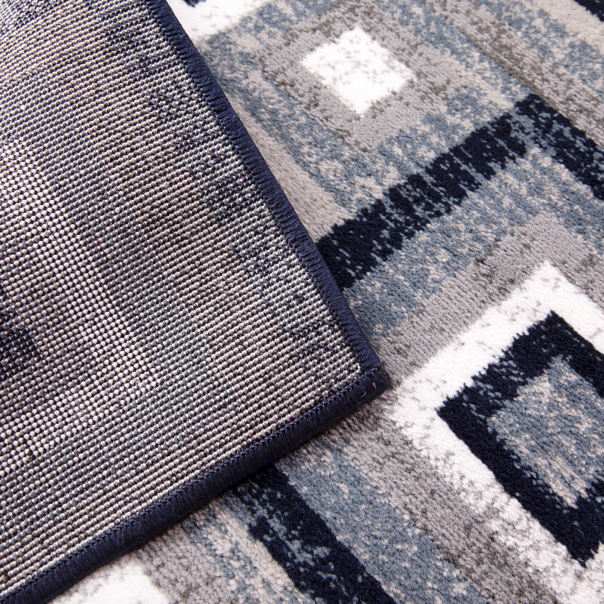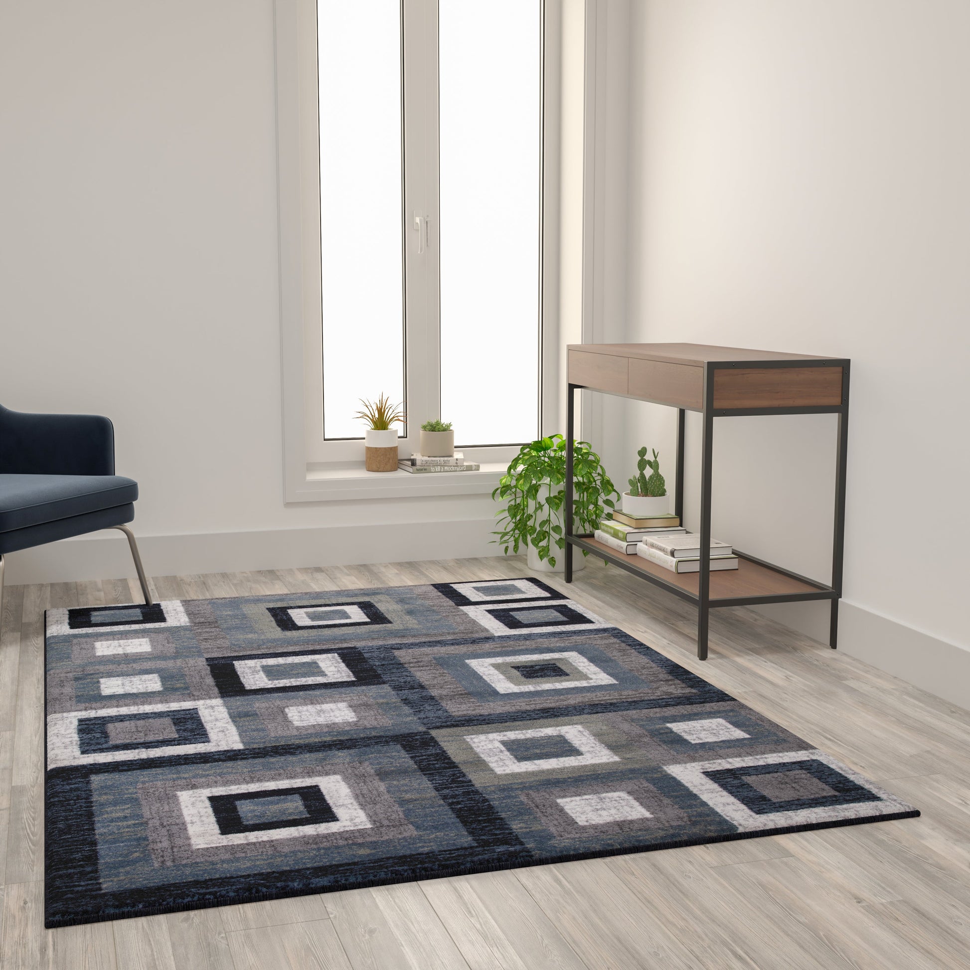 Gideon Collection Geometric 5' x 7' Blue, Grey, and White Olefin Area Rug with Cotton Backing, Living Room, Bedroom Dimensions: 60"W x 84"D x 0.5"H