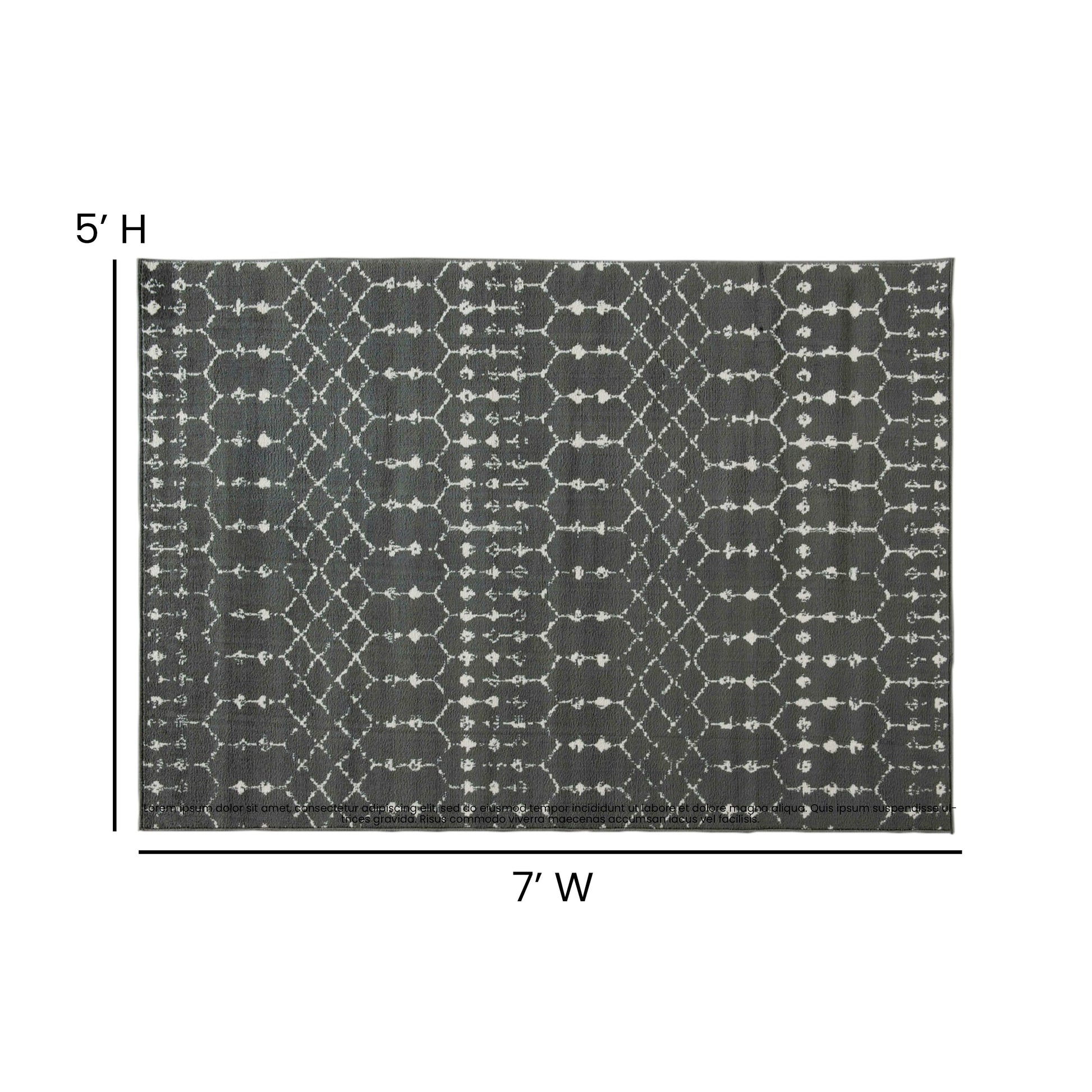 Beth Geometric Bohemian Low Pile Rug - 5' x 7' - Dark Gray/Ivory Polyester Dimensions: 61"W x 85"D x 0.5"H