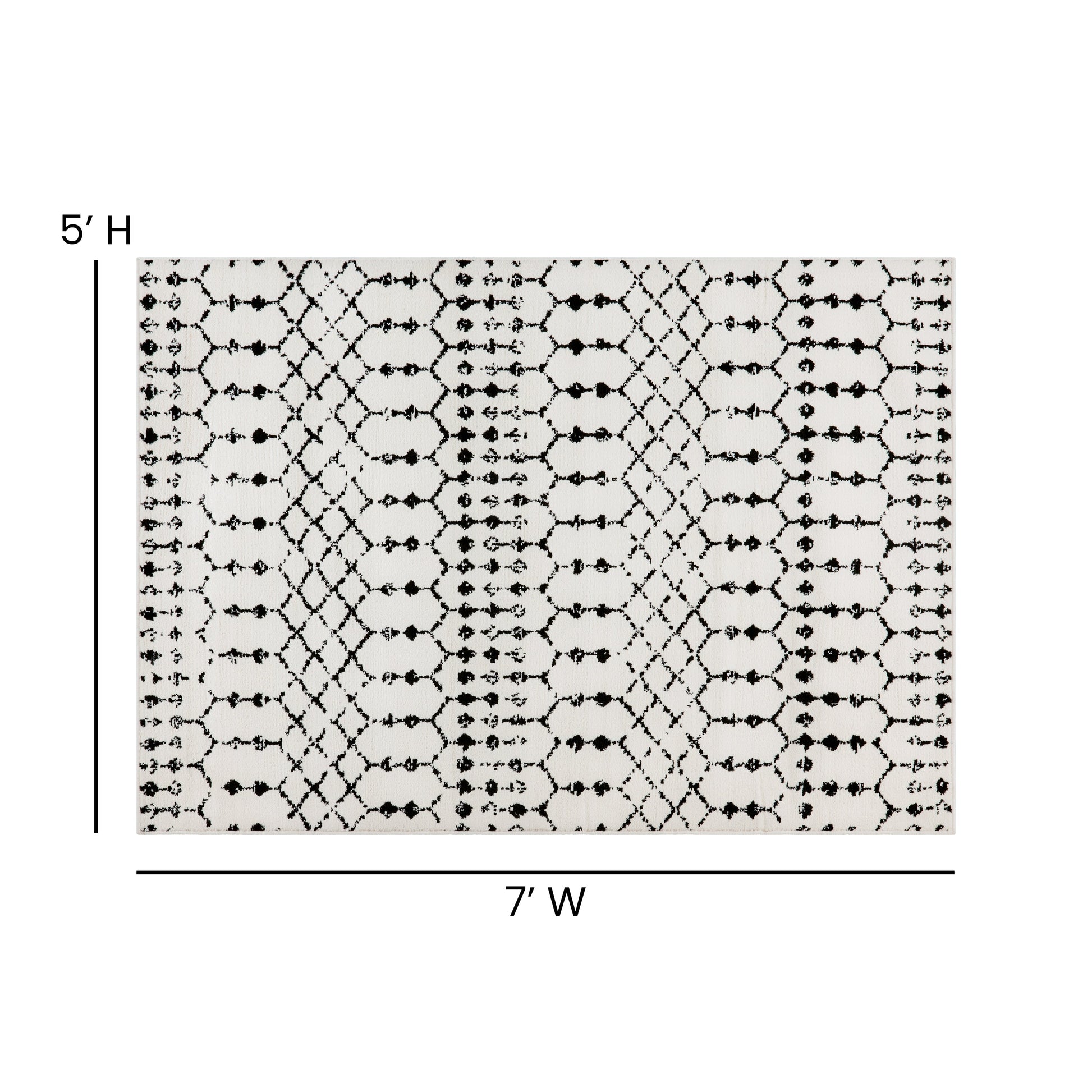 Beth Geometric Bohemian Low Pile Rug - 5' x 7' - Ivory/Black Dimensions: 60"W x 82"D x 0.5"H