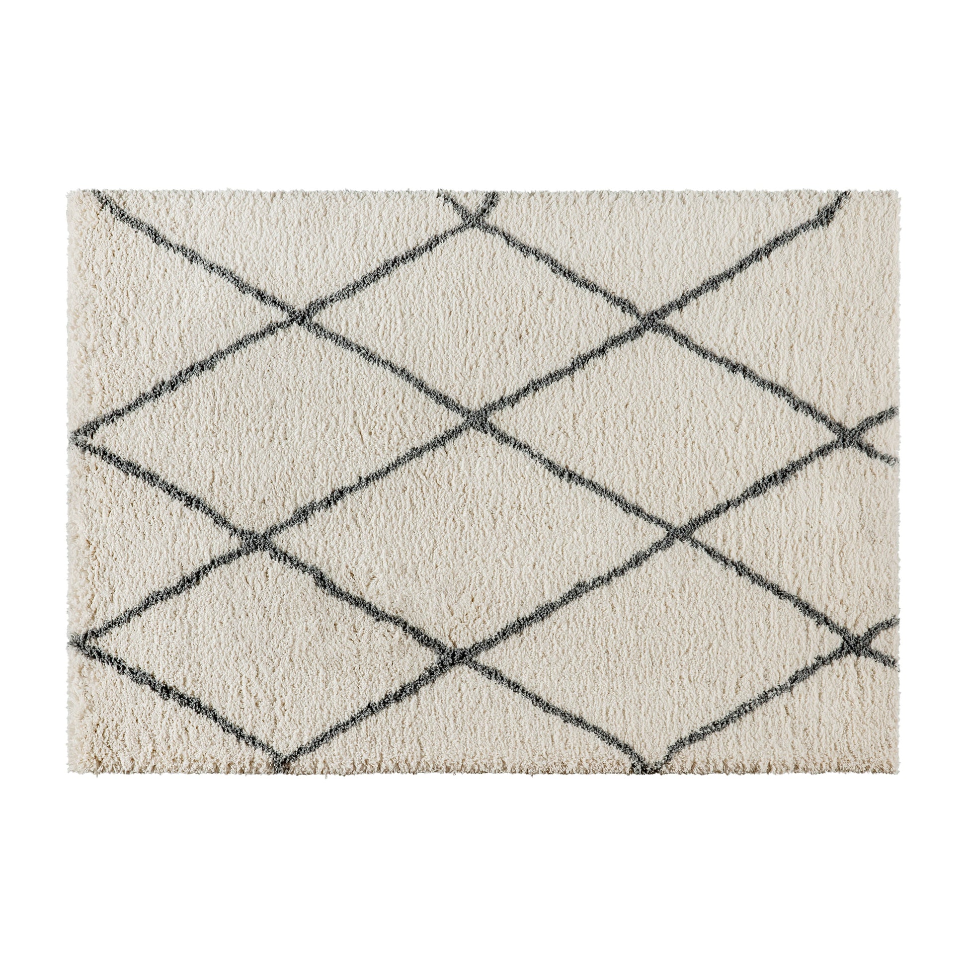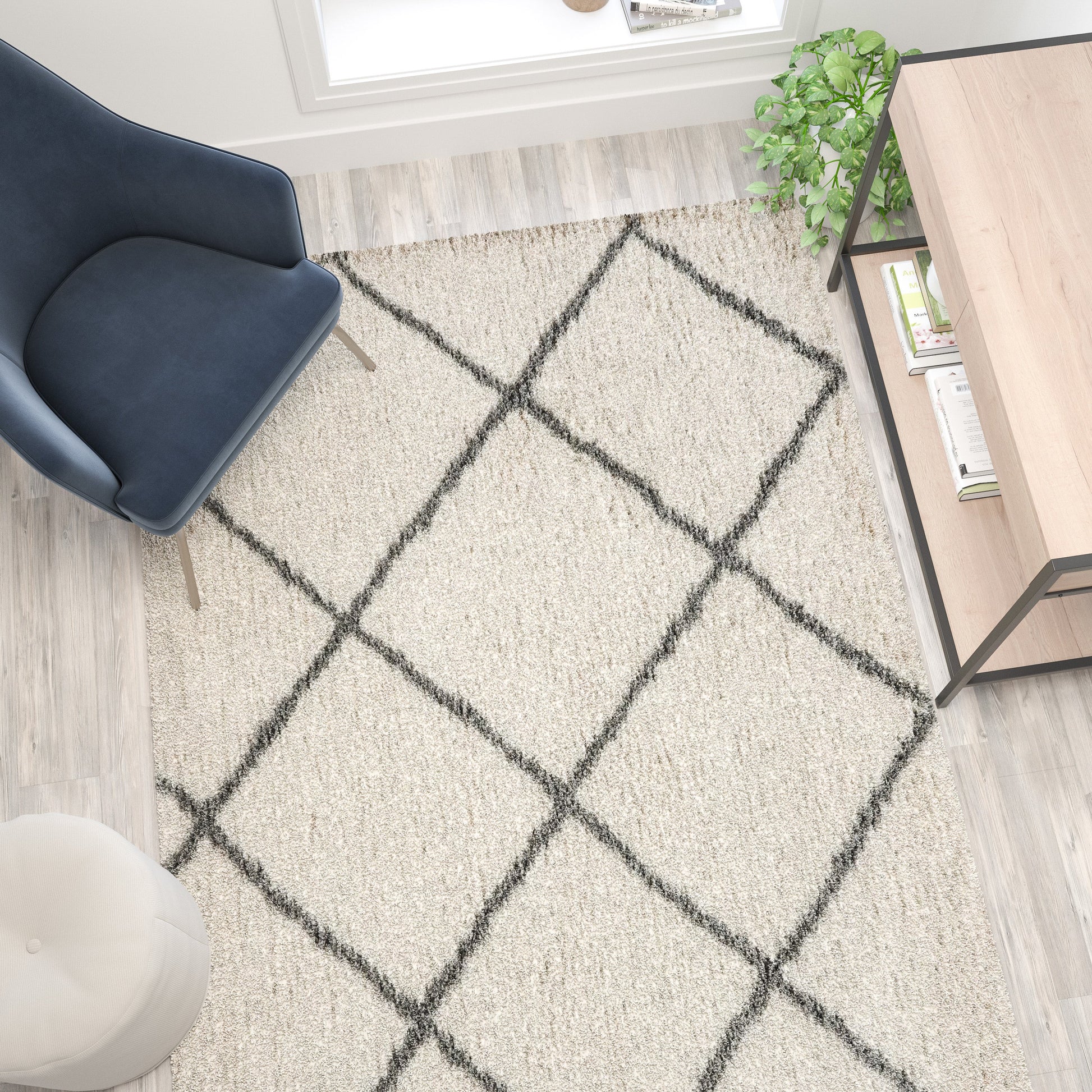Roxy Shag Style Diamond Trellis Area Rug - 5' x 7' - Ivory/Gray Polyester (PET) Dimensions: 61"W x 84"D x 0.5"H