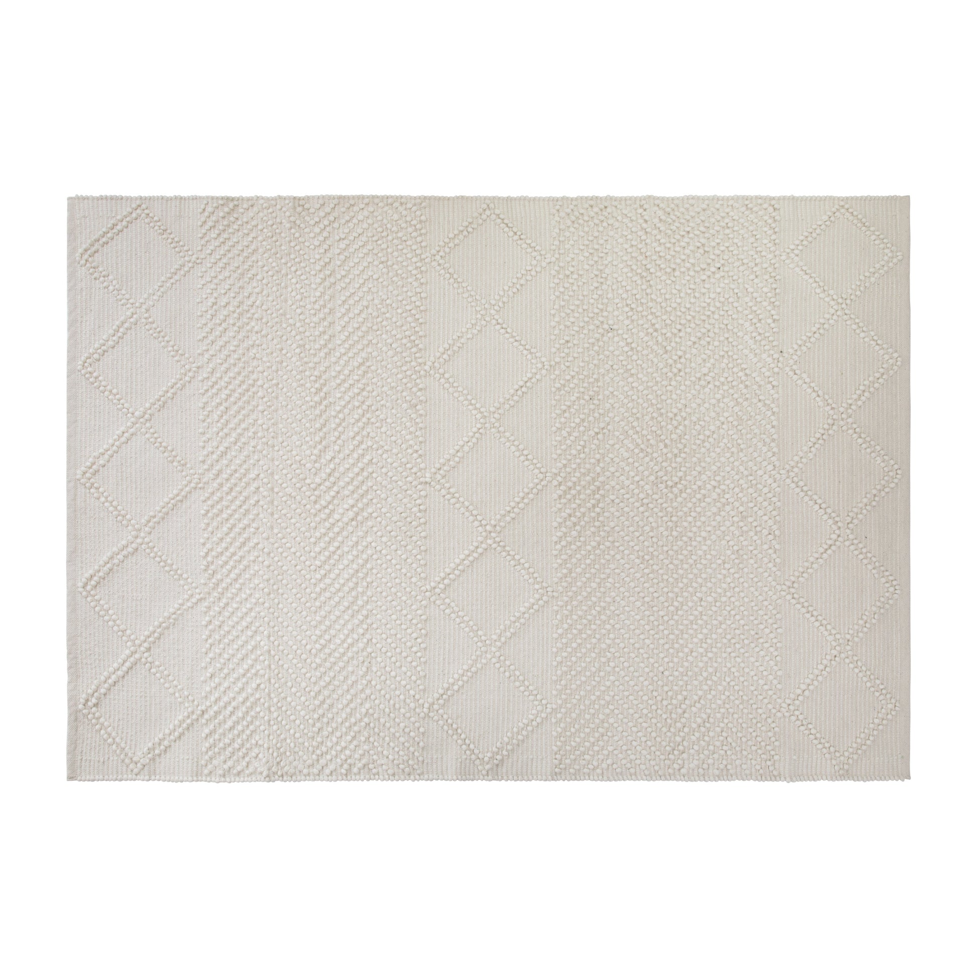 Melissa 5' x 7' Ivory & White Geometric Design Handwoven Area Rug - Wool/Polyester/Cotton Blend Dimensions: 59.5"W x 83.5"D x 0.5"H