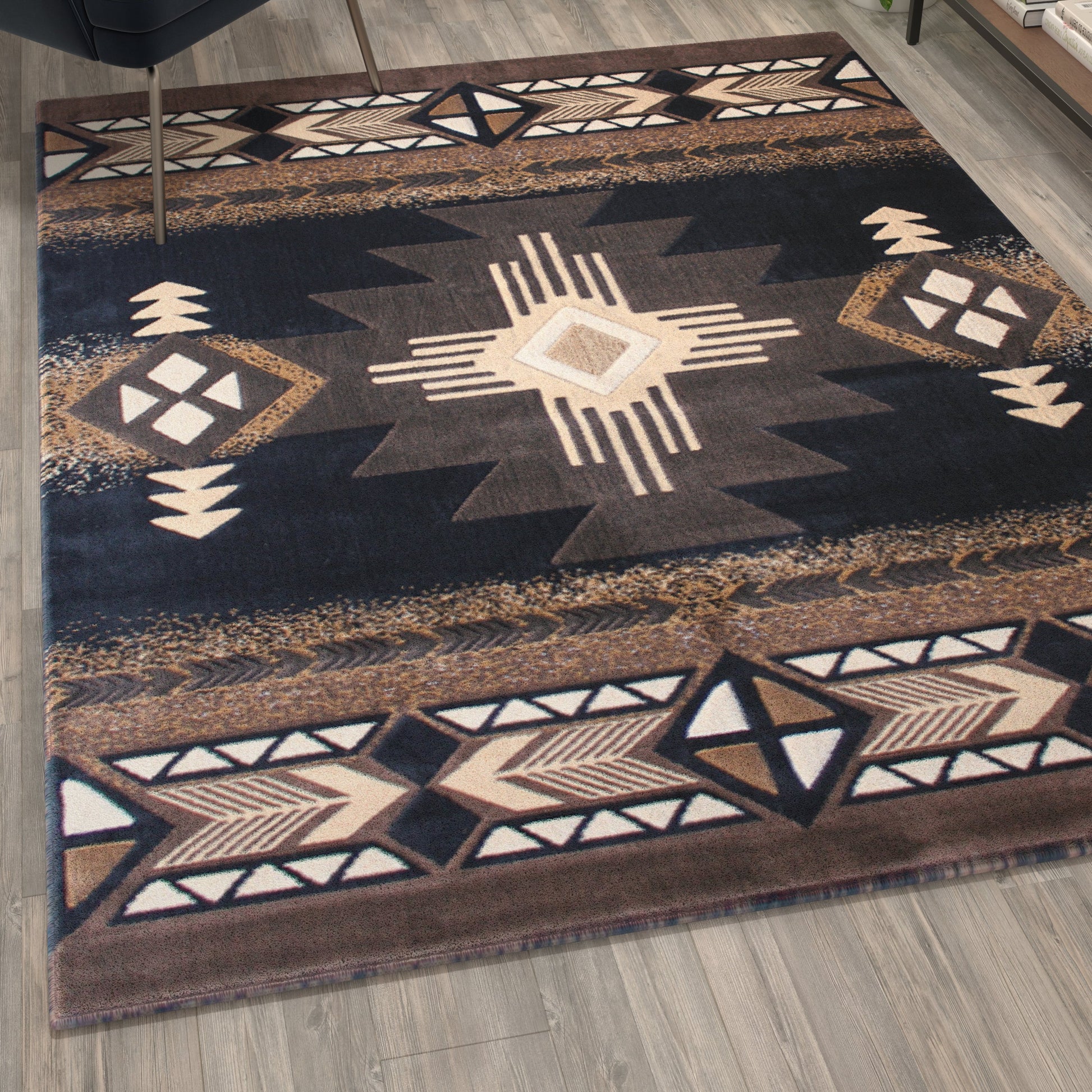 Mohave Collection 5' x 7' Black Traditional Southwestern Style Area Rug - Olefin Fibers with Jute Backing Dimensions: 60"W x 84"D x 0.5"H