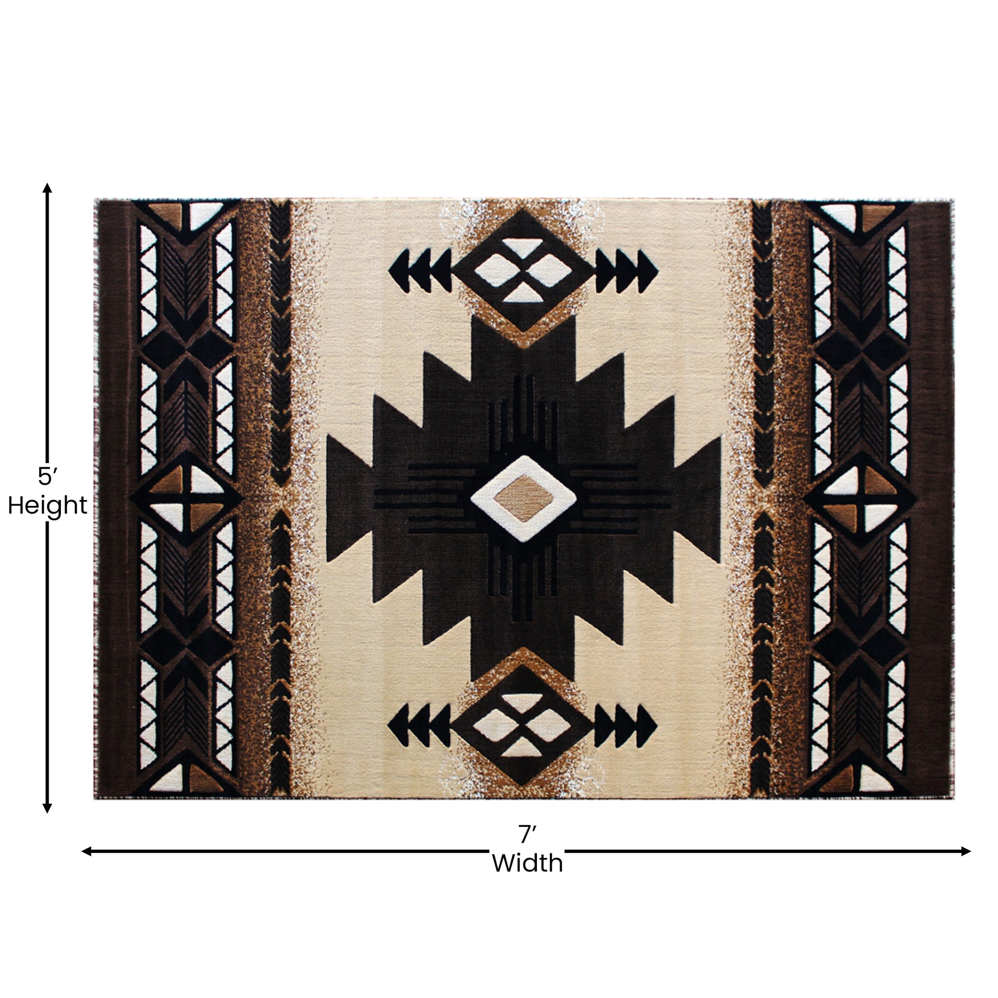 Mohave Collection 5' x 7' Brown Traditional Southwestern Style Area Rug - Olefin Fibers with Jute Backing Dimensions: 60"W x 84"D x 0.5"H
