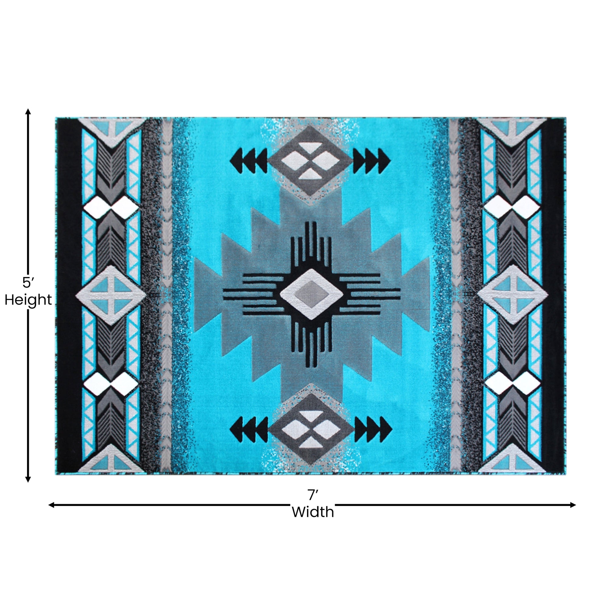 Mohave Collection 5' x 7' Turquoise Traditional Southwestern Style Area Rug - Olefin Fibers with Jute Backing Dimensions: 60"W x 84"D x 0.5"H
