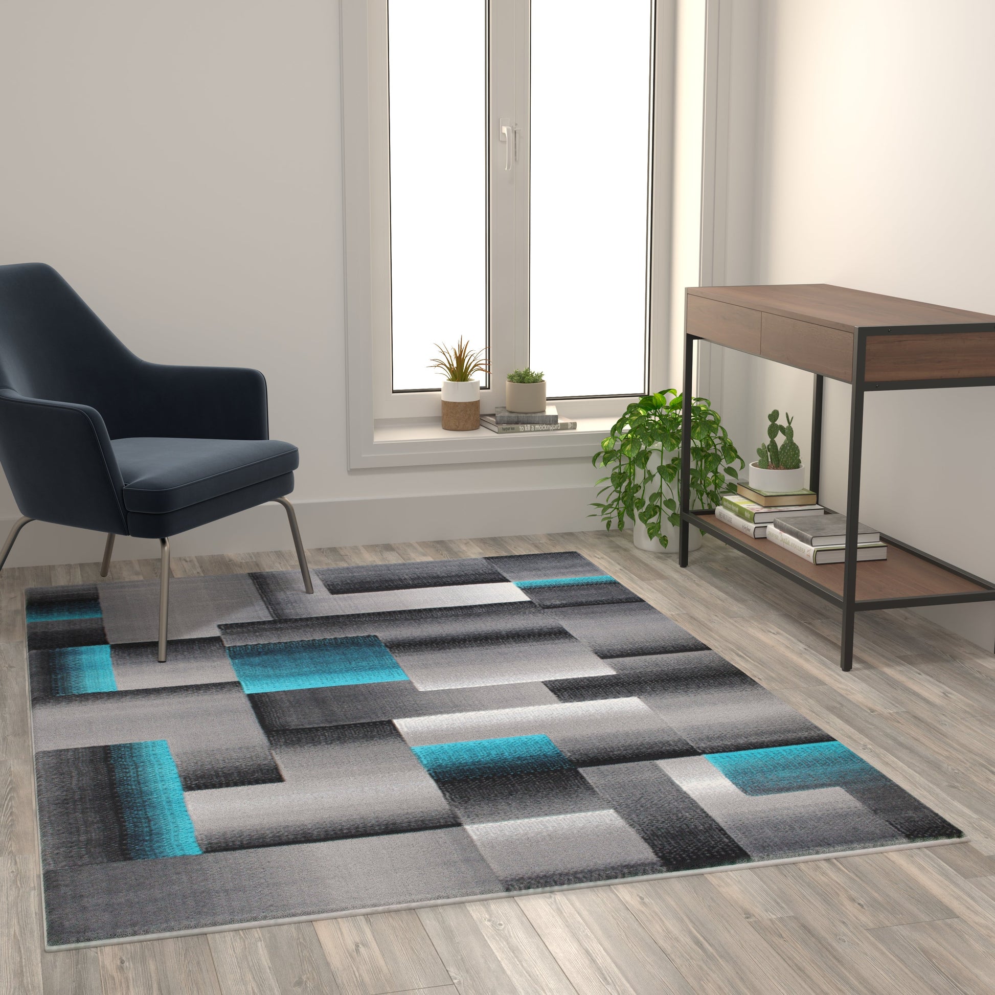 5x7 Turquoise Block Area Rug ACD-RGTRZ861-57-TQ-GG
