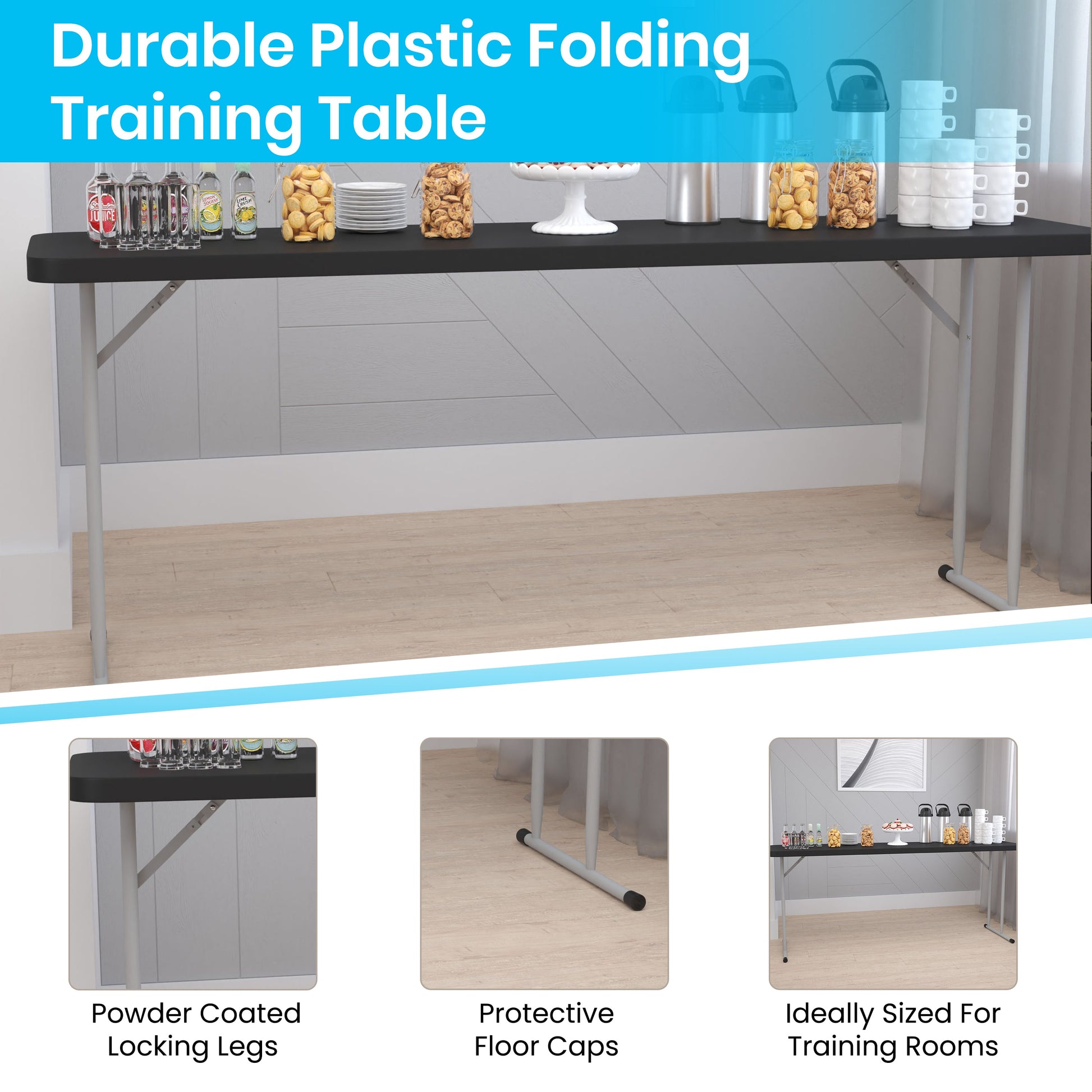 Kathryn 6-Foot Black Plastic Folding Training Table Dimensions: 18"W x 70.8"D x 29"H