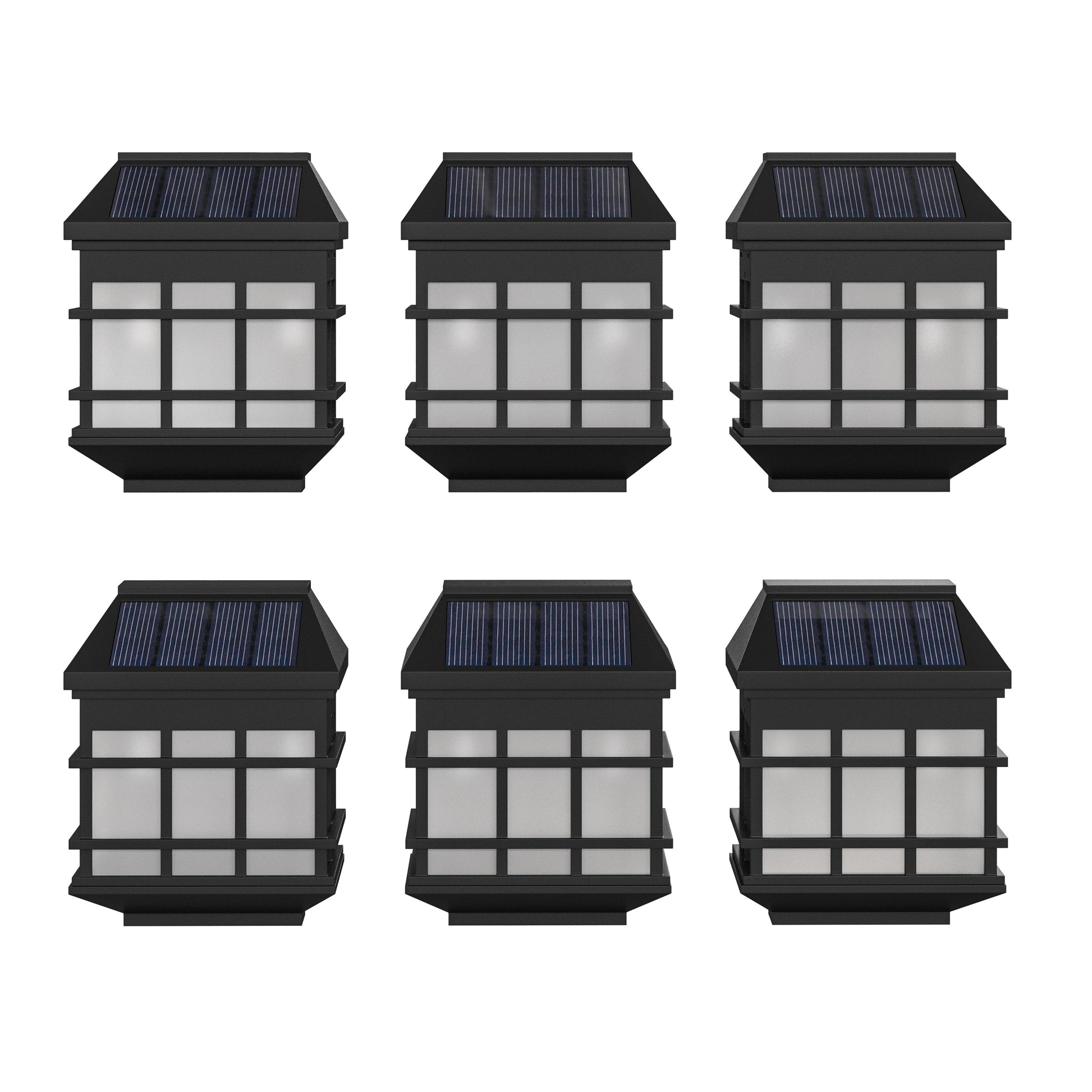 Holder 6 Pack Wall Mount LED Solar Lights - Weather Resistant Black Decorative Solar Powered Lights - Deck and Fencing Solar Lights Dimensions: 3.5"W x 2.5"D x 4.5"H