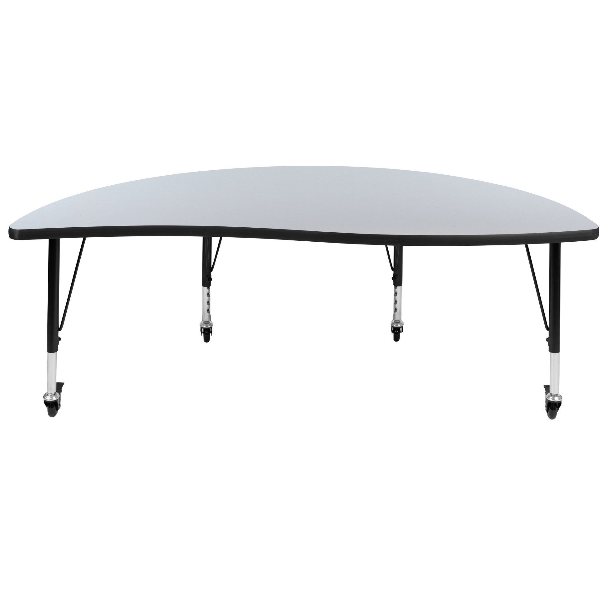 Wren Mobile 60" Half Circle Wave Flexible Collaborative Grey Thermal Laminate Activity Table-Height Adjust Short Legs Dimensions: 30"W x 60"D x 17" - 25"H