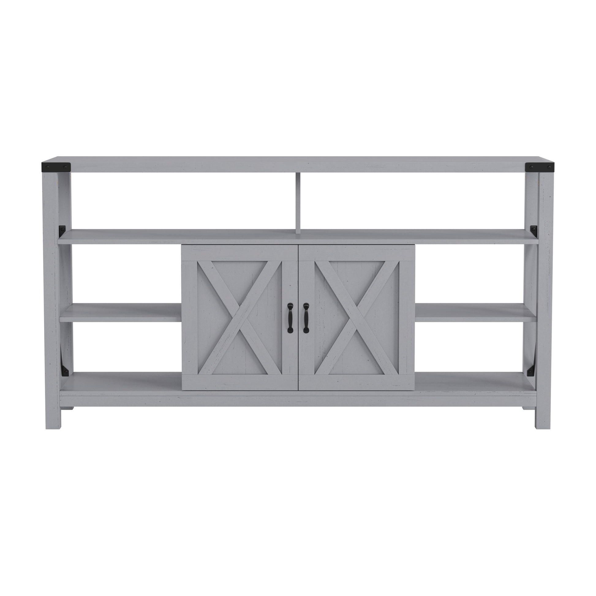 Transform your living space with this stunning modern farmhouse TV stand, designed to accommodate televisions up to 60 inches. With a sleek and stylish design, this versatile console cabinet not only enhances your entertainment area but also offers ample storage solutions. Featuring a combination of storage cabinets and open shelves, it provides the perfect place for your media devices, books, and decorative items.