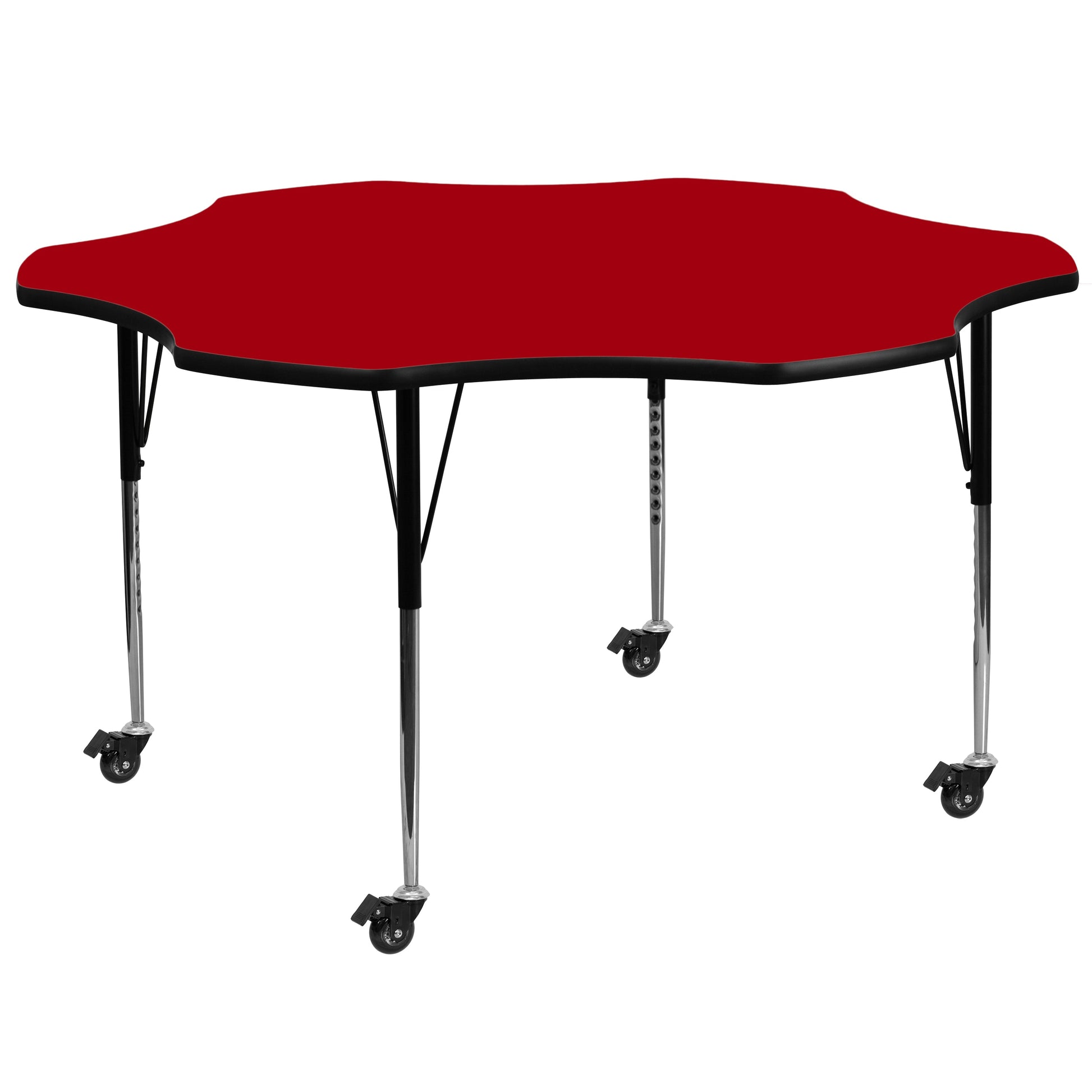 Wren Mobile 60'' Flower Red Thermal Laminate Activity Table - Standard Height Adjustable Legs Dimensions: 60"W x 60"D x 22.25" - 30.37"H