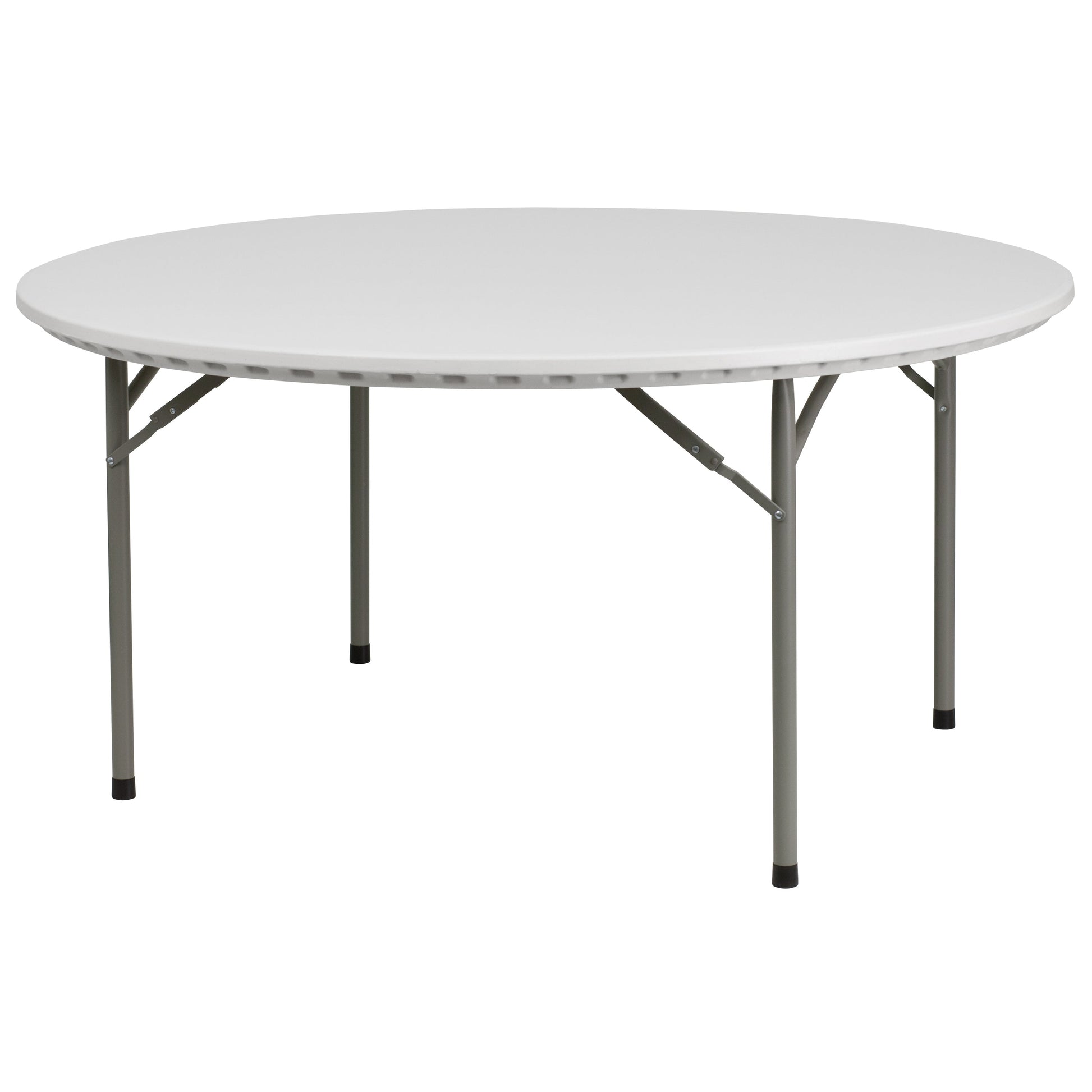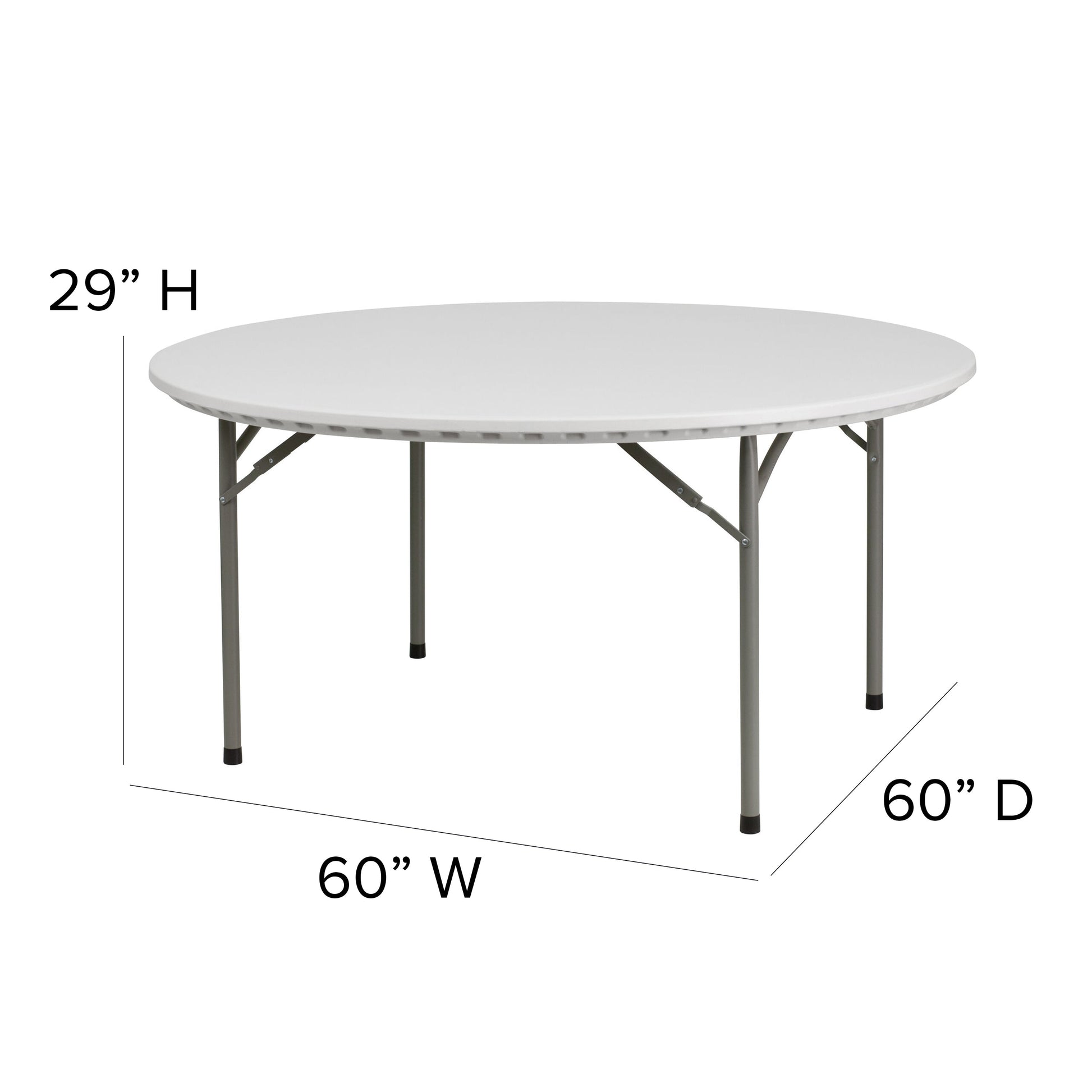 Kathryn 5-Foot Round Granite White Plastic Folding Table Dimensions: 60"W x 60"D x 29"H