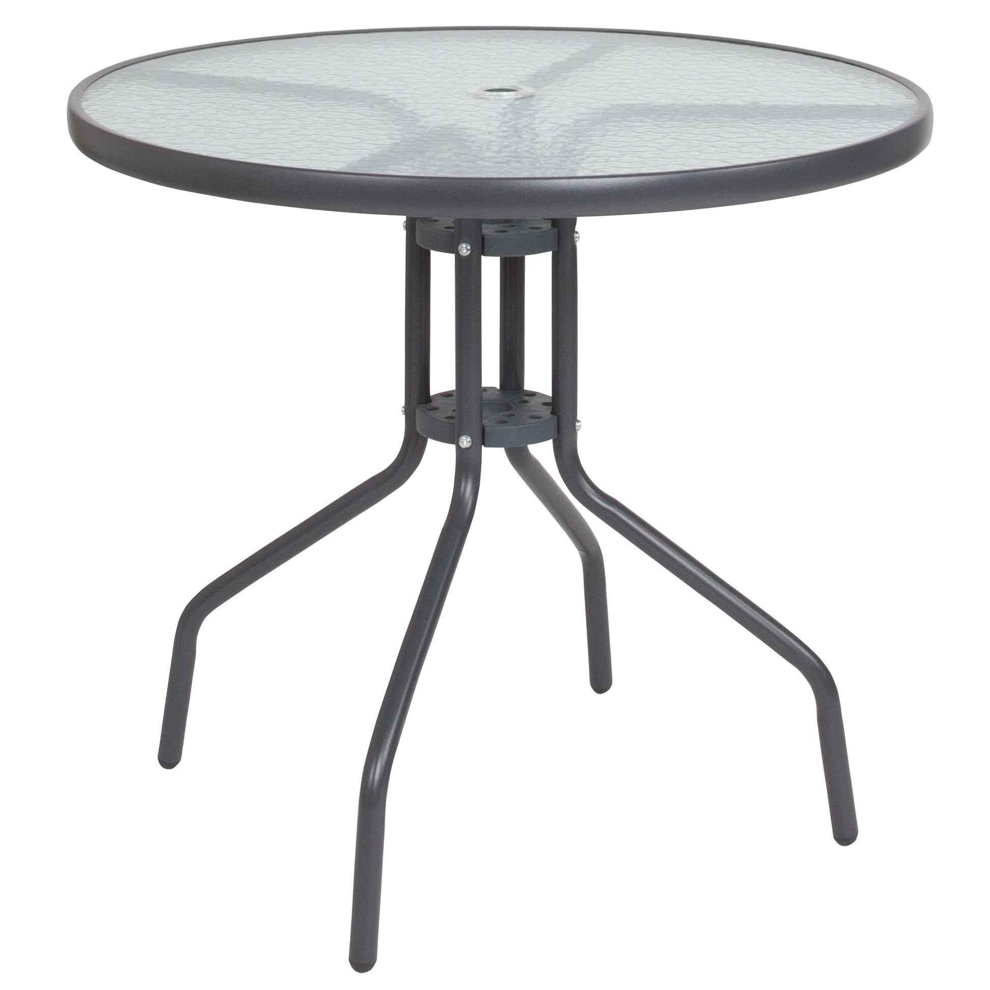 Nantucket 6 Piece Brown Patio Garden Set with Umbrella Table and Set of 4 Folding Chairs Dimensions: 31.25"W x 31.25"D x 28"H