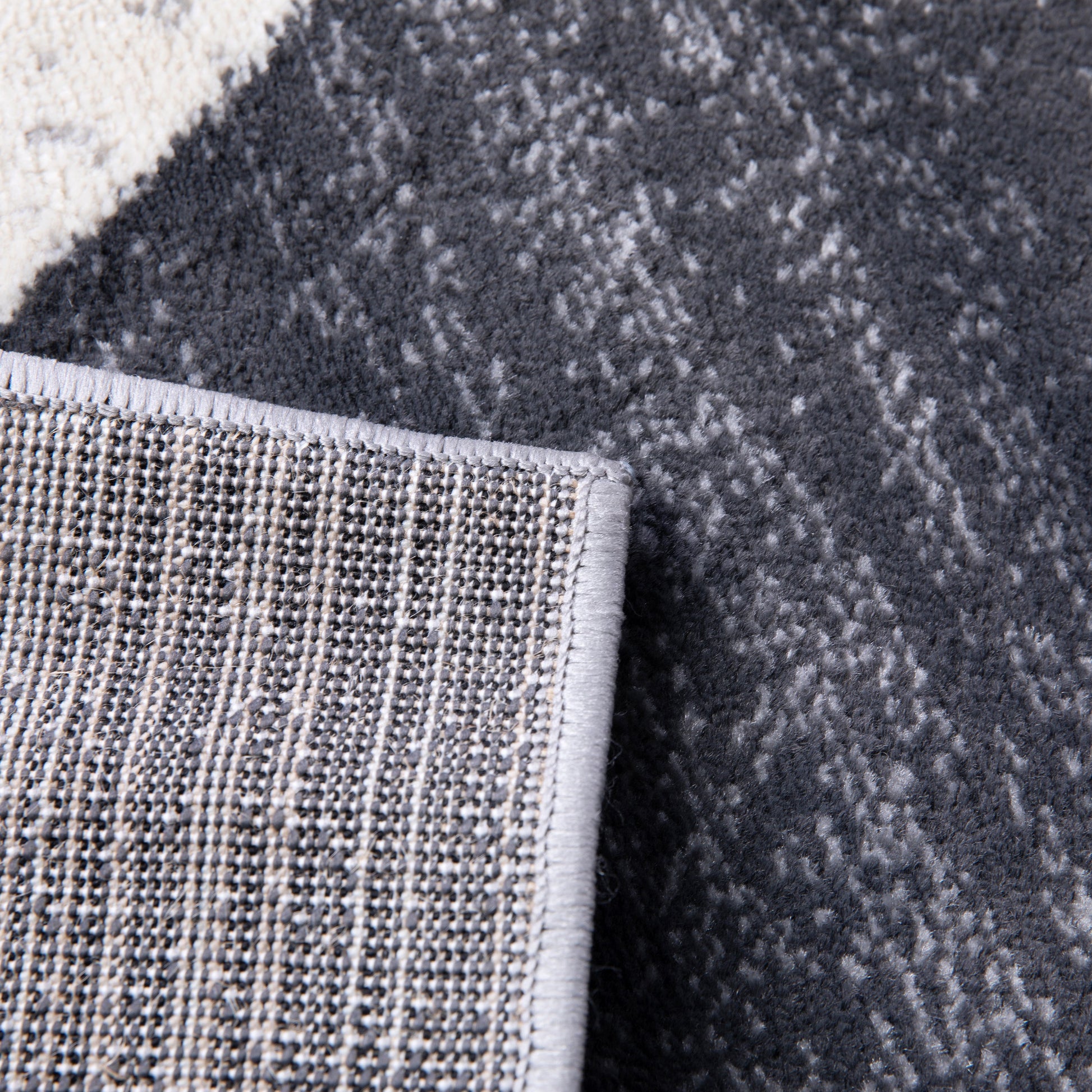 Harken Collection Geometric 6' x 9' Black and Gray Olefin Area Rug with Jute Backing, Living Room, Bedroom Dimensions: 96"W x 120"D x 0.5"H