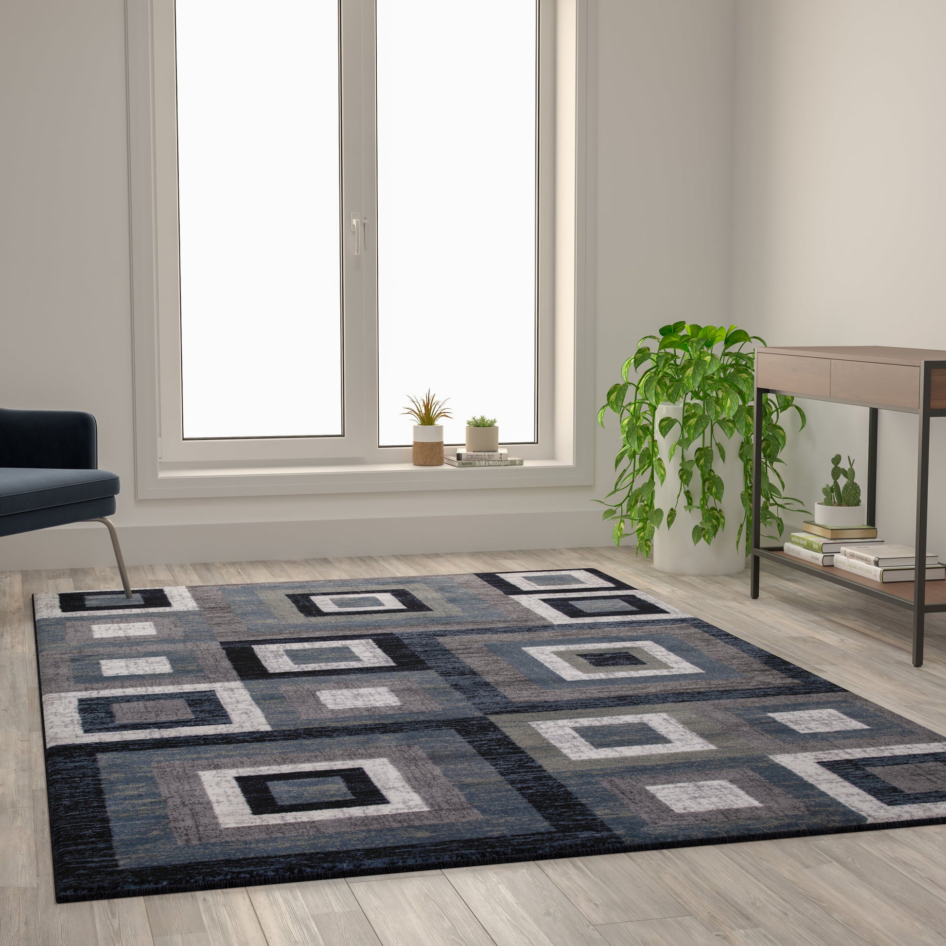 Gideon Collection Geometric 6' x 9' Blue, Grey, and White Olefin Area Rug with Cotton Backing, Living Room, Bedroom Dimensions: 72"W x 108"D x 0.5"H