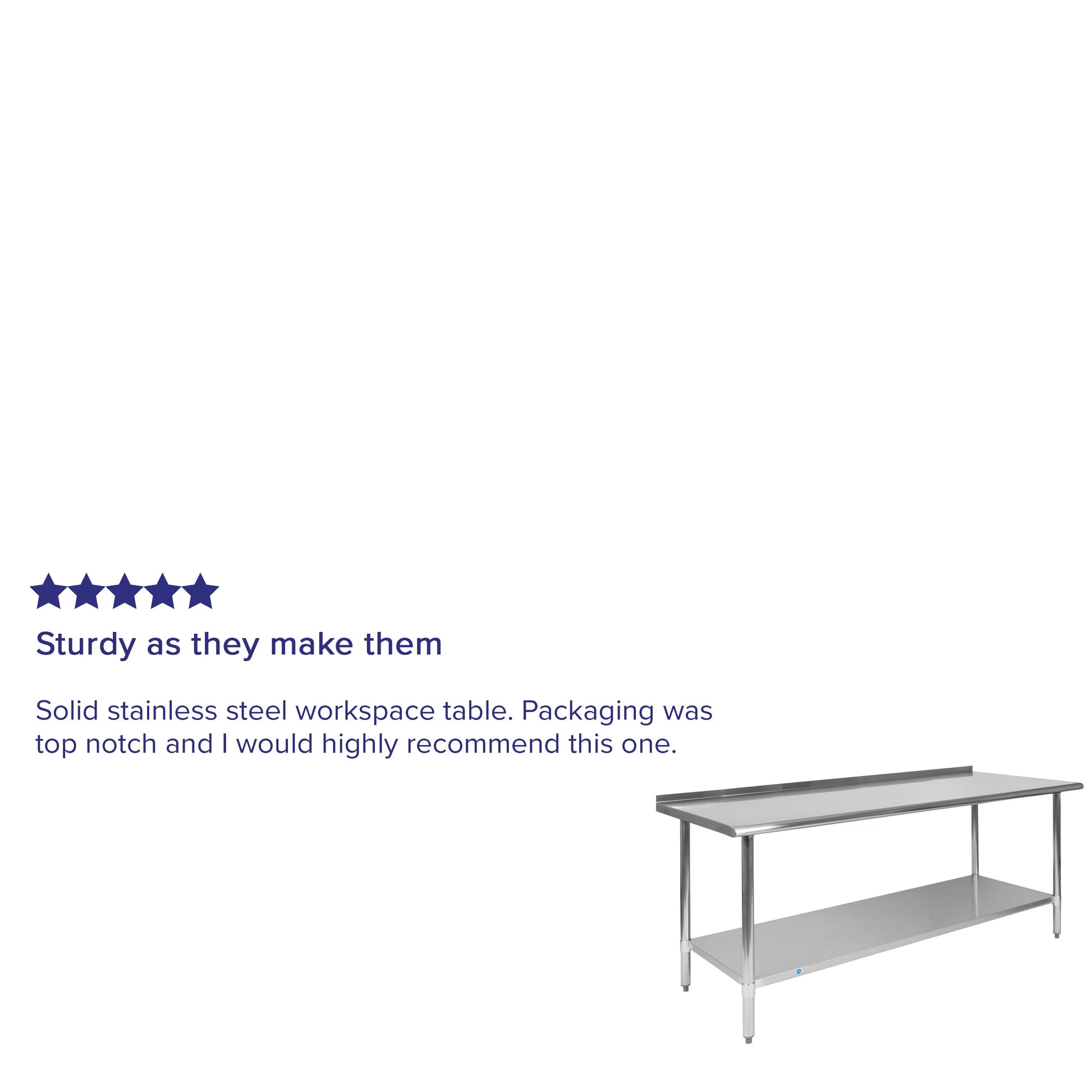 Reader Stainless Steel 18 Gauge Prep and Work Table with 1.5" Backsplash and Undershelf - NSF Certified - 72"W x 30"D x 36"H Dimensions: 72"W x 30"D x 36"H